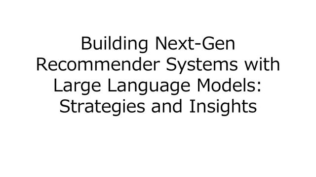 1. Building Next-Gen Recommender Systems with Large Language Models: Strategies and