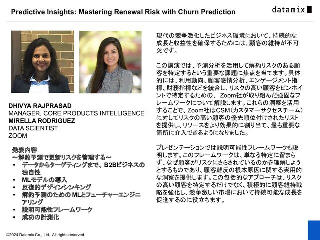 19:45~20:00:解約予測で更新リスクを管理(datamix エグゼクティブフェロー 江崎)