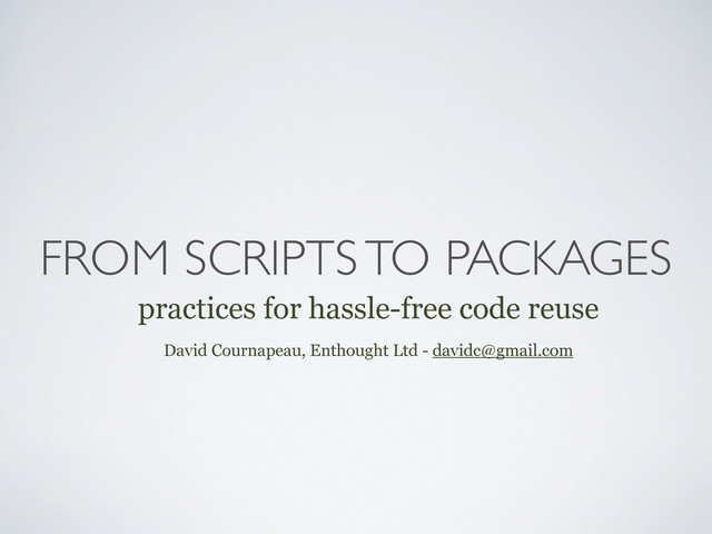 to be reusable • Reusability is key to help collaboration and ensure maintainability • Lots of freely available tools to help documenting, testing, distributing software • Helping others may be helping yourself in the future