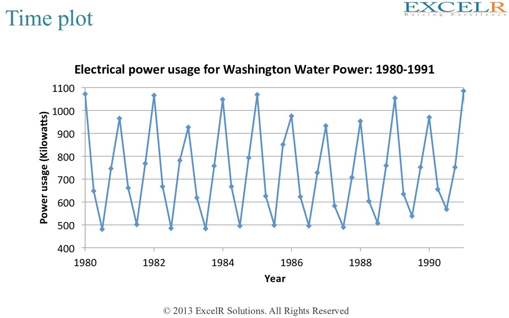 Plots a variable against Hme index • Appropriate for visualizing serially collected data (Hme series) • Brings out many useful aspects of the structure of the data • Example: Electrical usage for Washington Water Power (Quarterly data from 1980 to 1991)