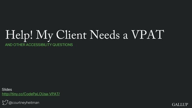This talk will go over what a VPAT is, how to start auditing your websites for accessibility, and the basics of how to write a VPAT. You'll leave this session with a greater knowledge of accessibility, and the current legal landscape, as well as how to go back to your company and answer some of your clients questions about accessibility.