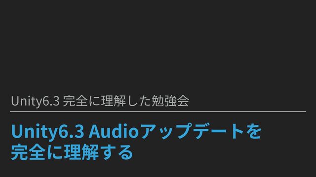 Unity6.3 Audioアップデートを 完全に理解する Unity6.3 完全に理解した勉強会