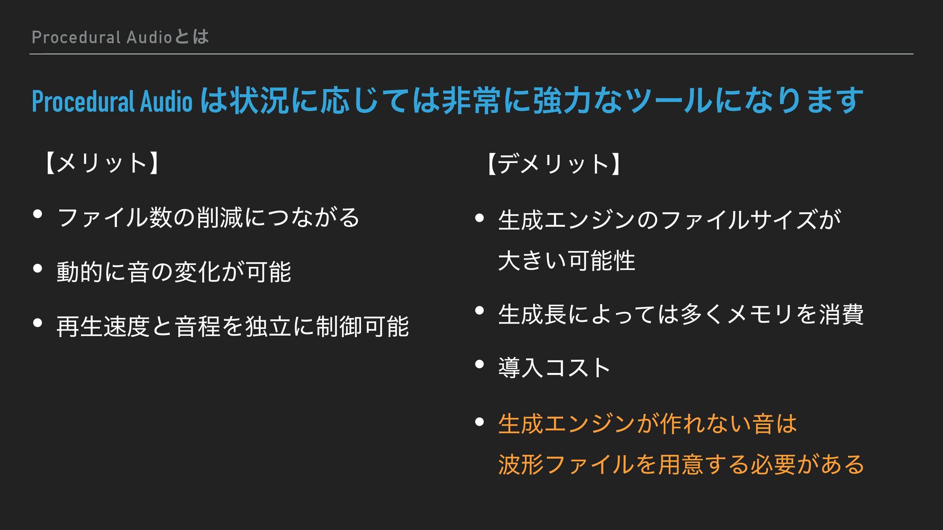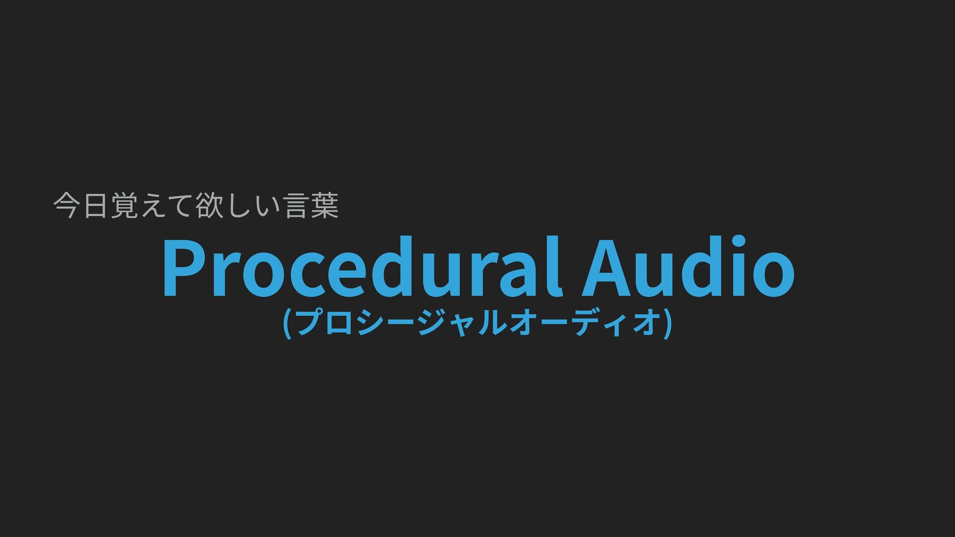 Procedural Audio (プロシージャルオーディオ) 今 日 覚えて欲しい 言 葉