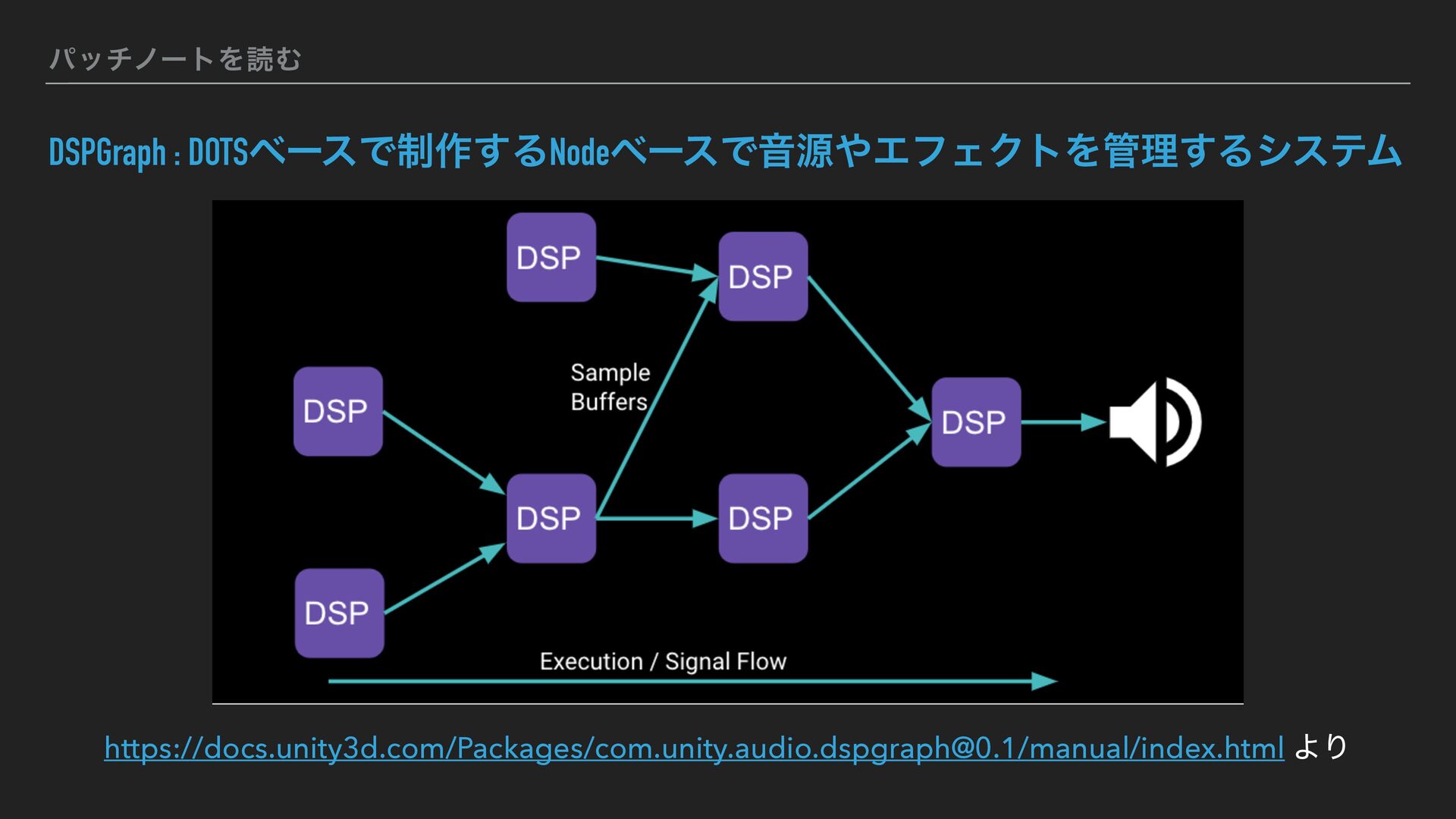 ύονϊʔτΛಡΉ DSPGraph : DOTSϕʔεͰ੍࡞͢ΔNodeϕʔεͰԻݯΤϑΣΫτΛཧ͢ΔγεςϜ https://docs.unity3d.com/Packages/