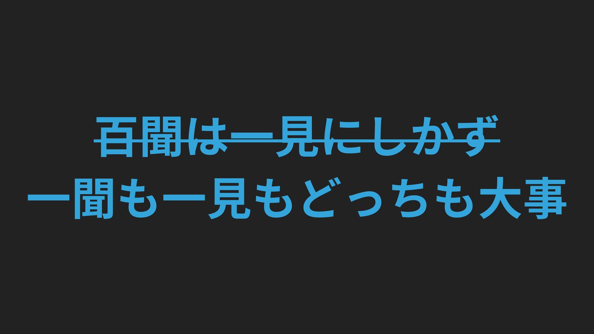 百聞は 一見 にしかず 一 聞も 一見 もどっちも 大 事