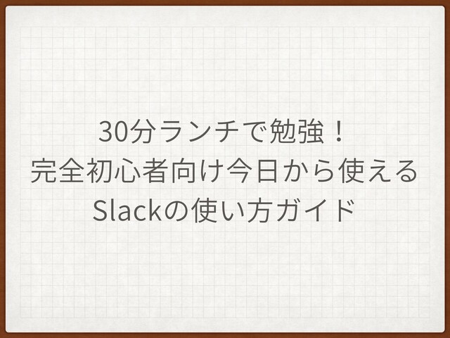 30分ランチで勉強! 完全初⼼者向け今⽇から使える Slackの使い⽅ガイド
