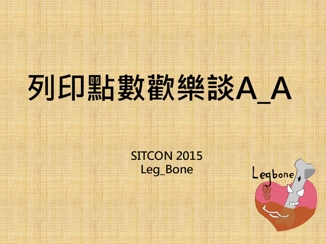 列印點數歡樂談A_A SITCON 2015 Leg_Bone