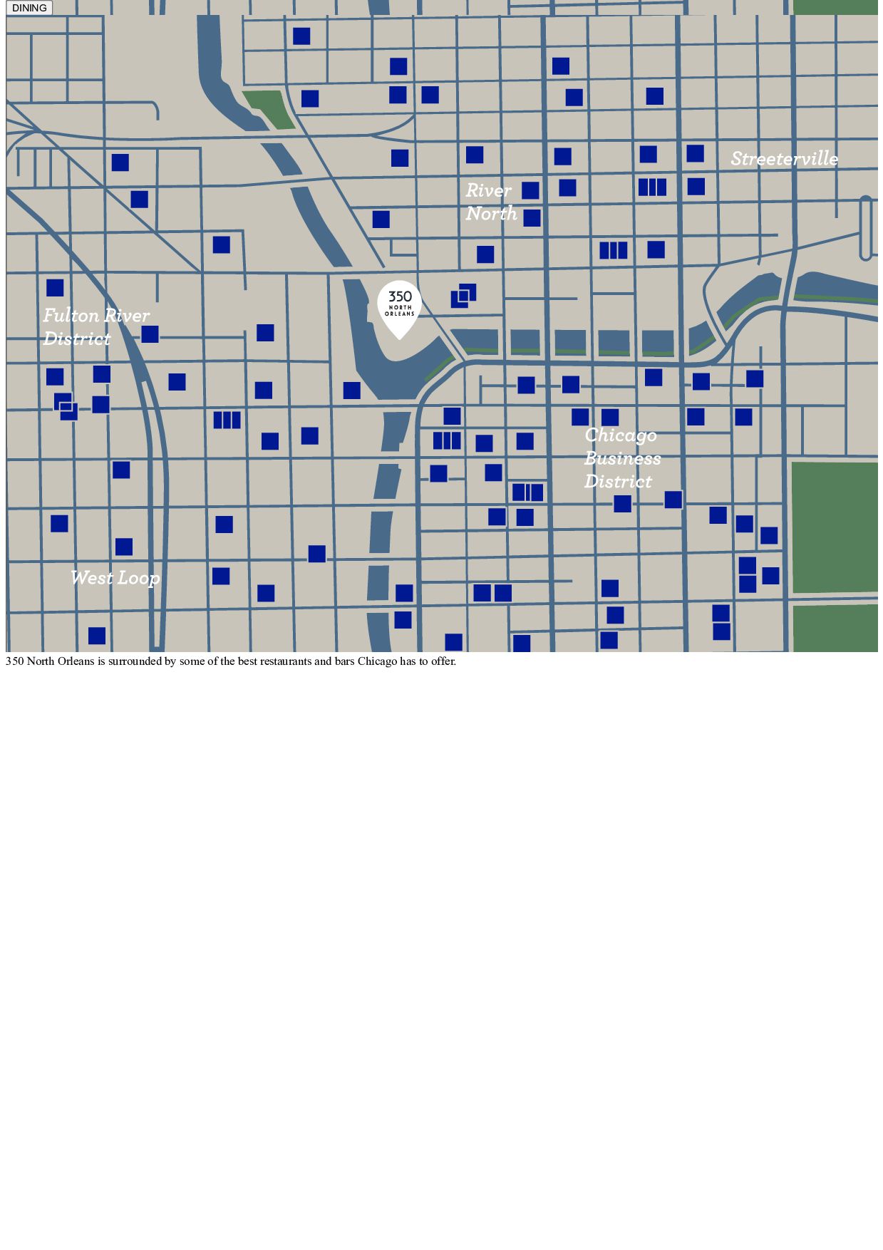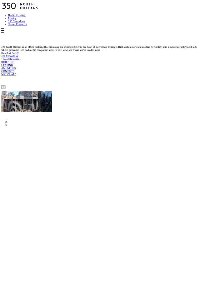 350 North Orleans is an office building that sits along the Chicago River in the heart of downtown Chicago. Rich with history and modern versatility, it is a modern employment hub where grown-up tech and media companies want to be. Come see where we’re headed next.