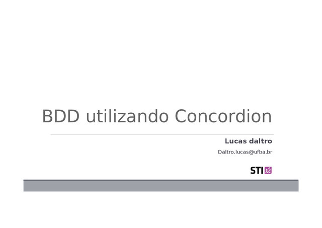 por Comportamento) § Exemplo Given some initial context (the givens) When an event occurs Then ensure some outcomes § “BDD é uma técnica em desenvolvimento ágil para melhorar a comunicação da equipe.” Dado [contexto inicial] Quando [evento ocorre] Então [o resultado] § “BDD permite que o desenvolvedor foque em por que o código deve ser escrito, ao invés de detalhes técnicos.” Gojko Adzic