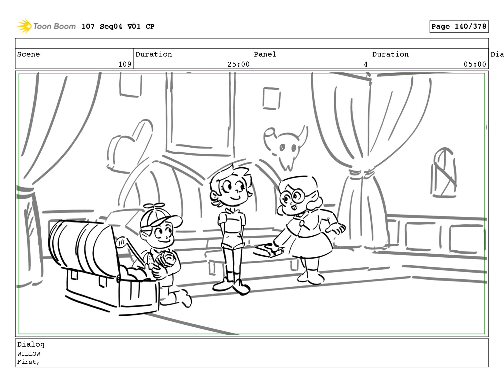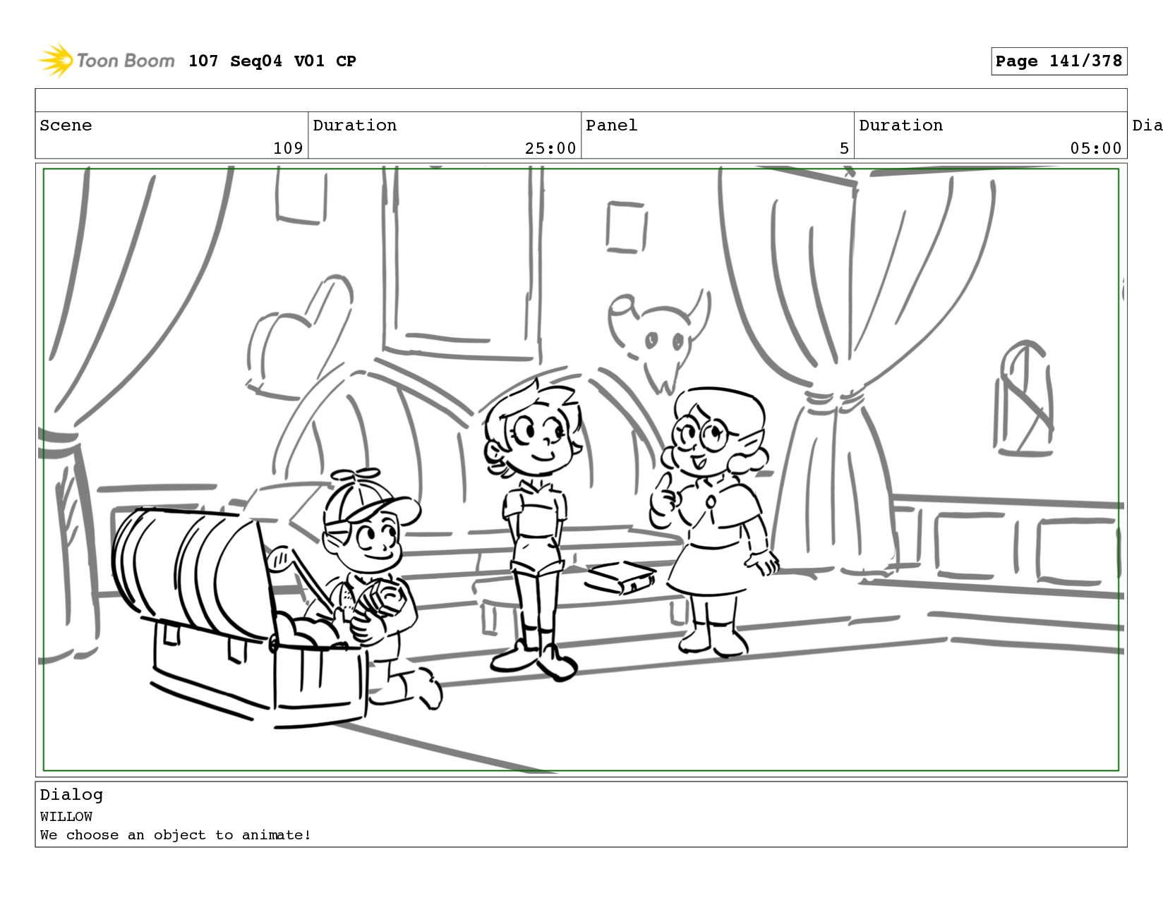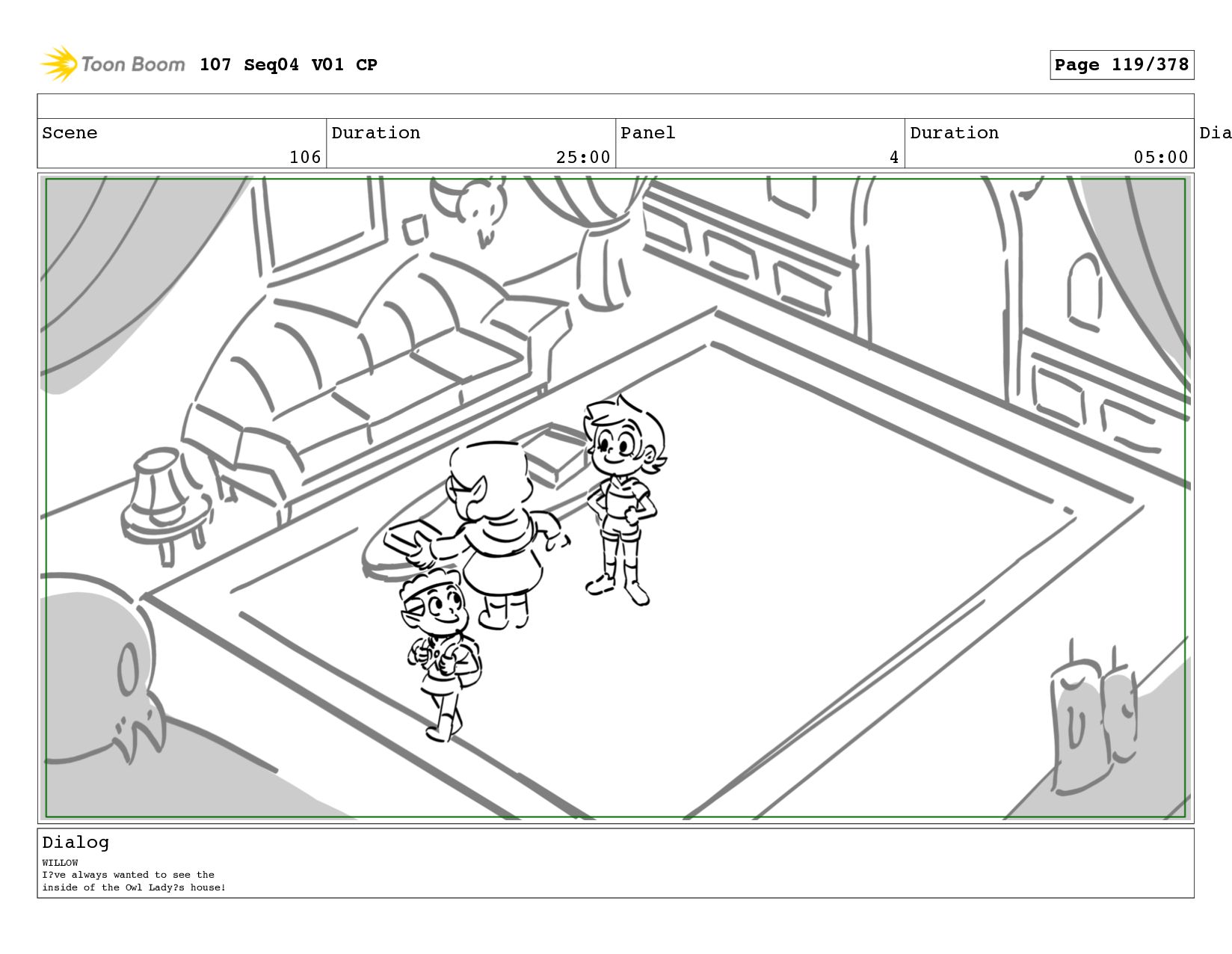 Scene 155 Duration 25:00 Panel 1 Duration 05:00 Dia 107