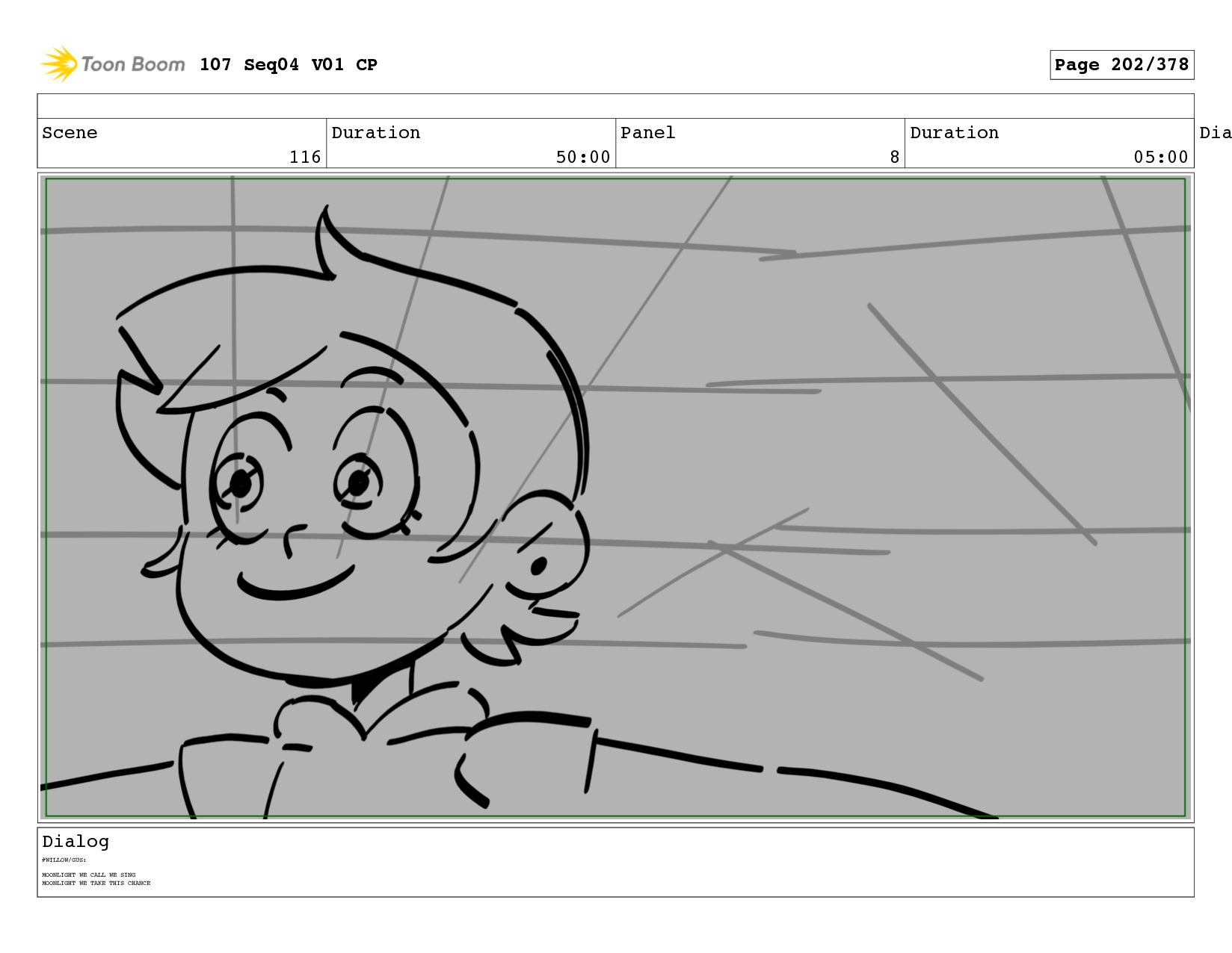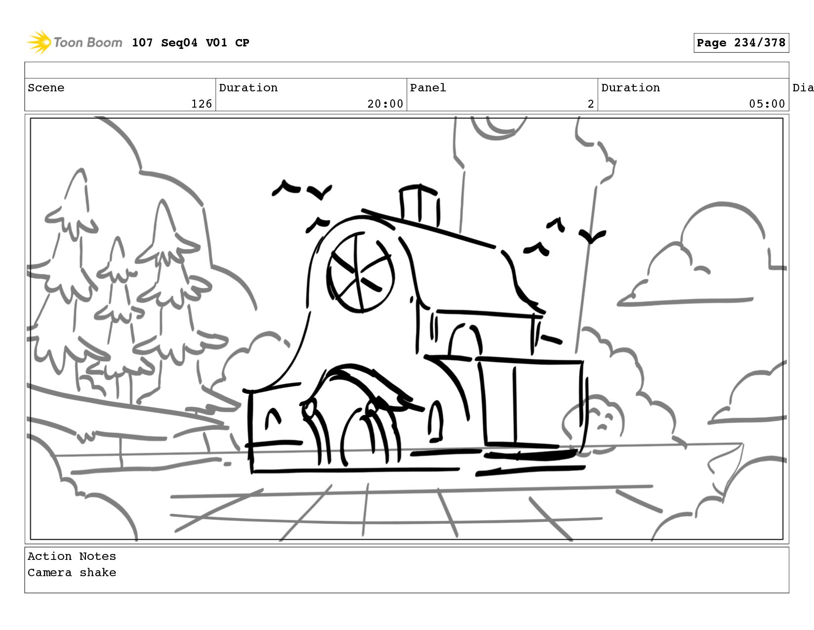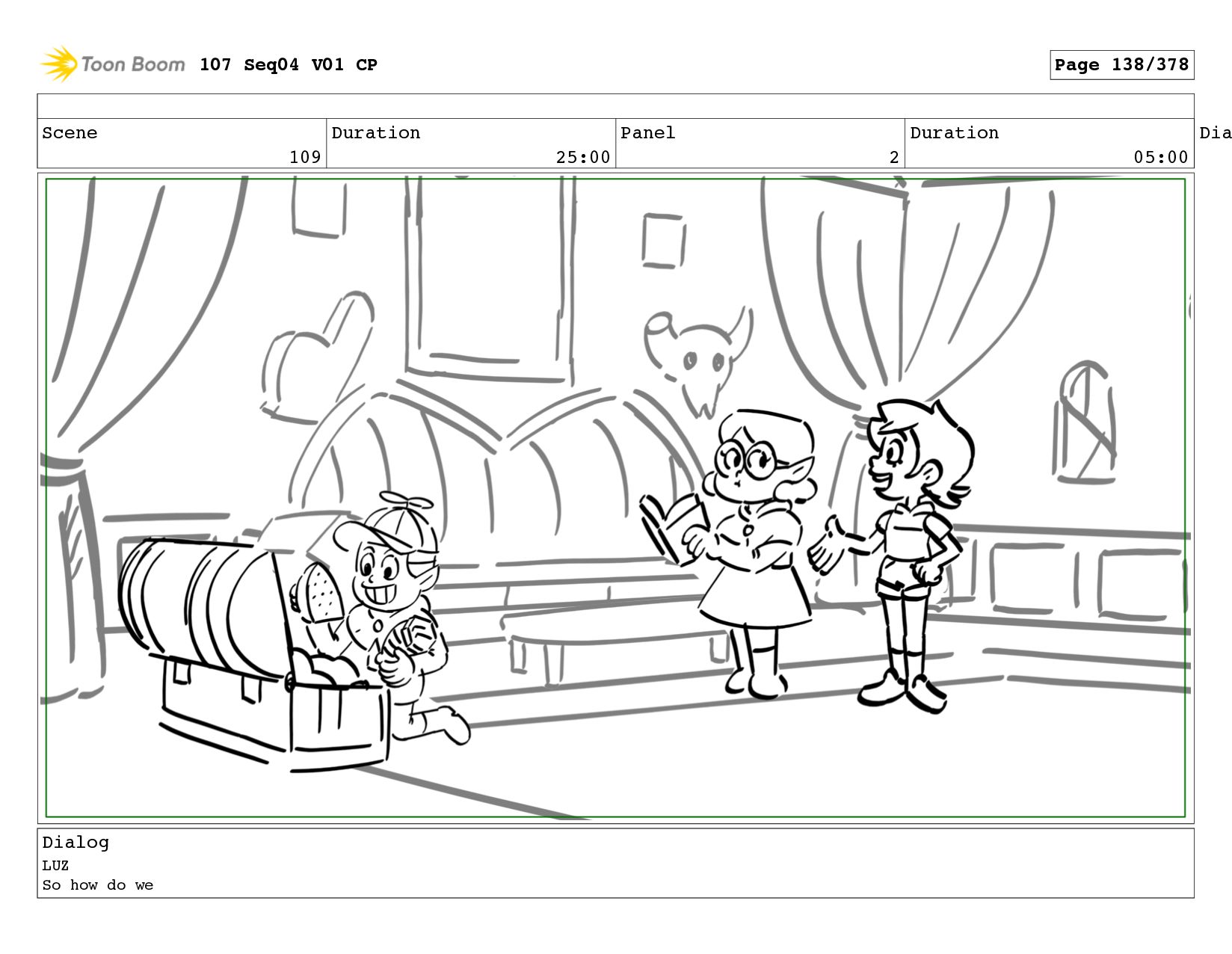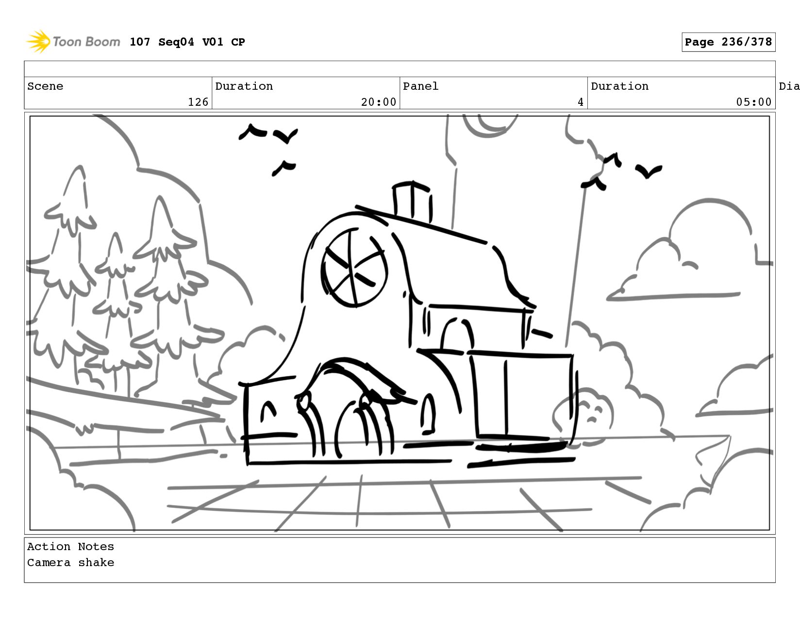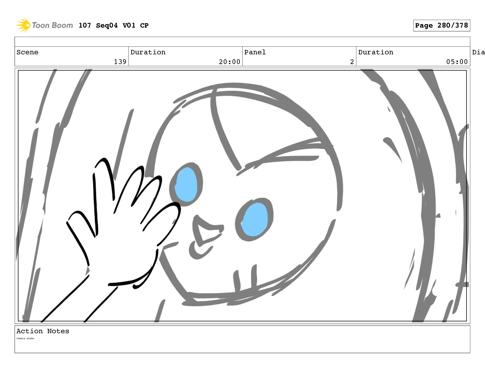Scene 157 Duration 20:00 Panel 2 Duration 05:00 Dia 107