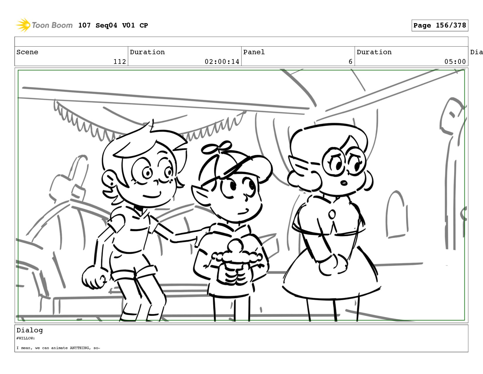 Scene 156 Duration 55:00 Panel 11 Duration 05:00 Dia 107