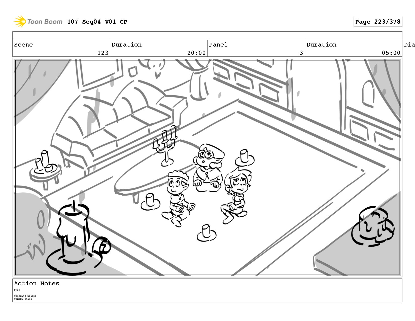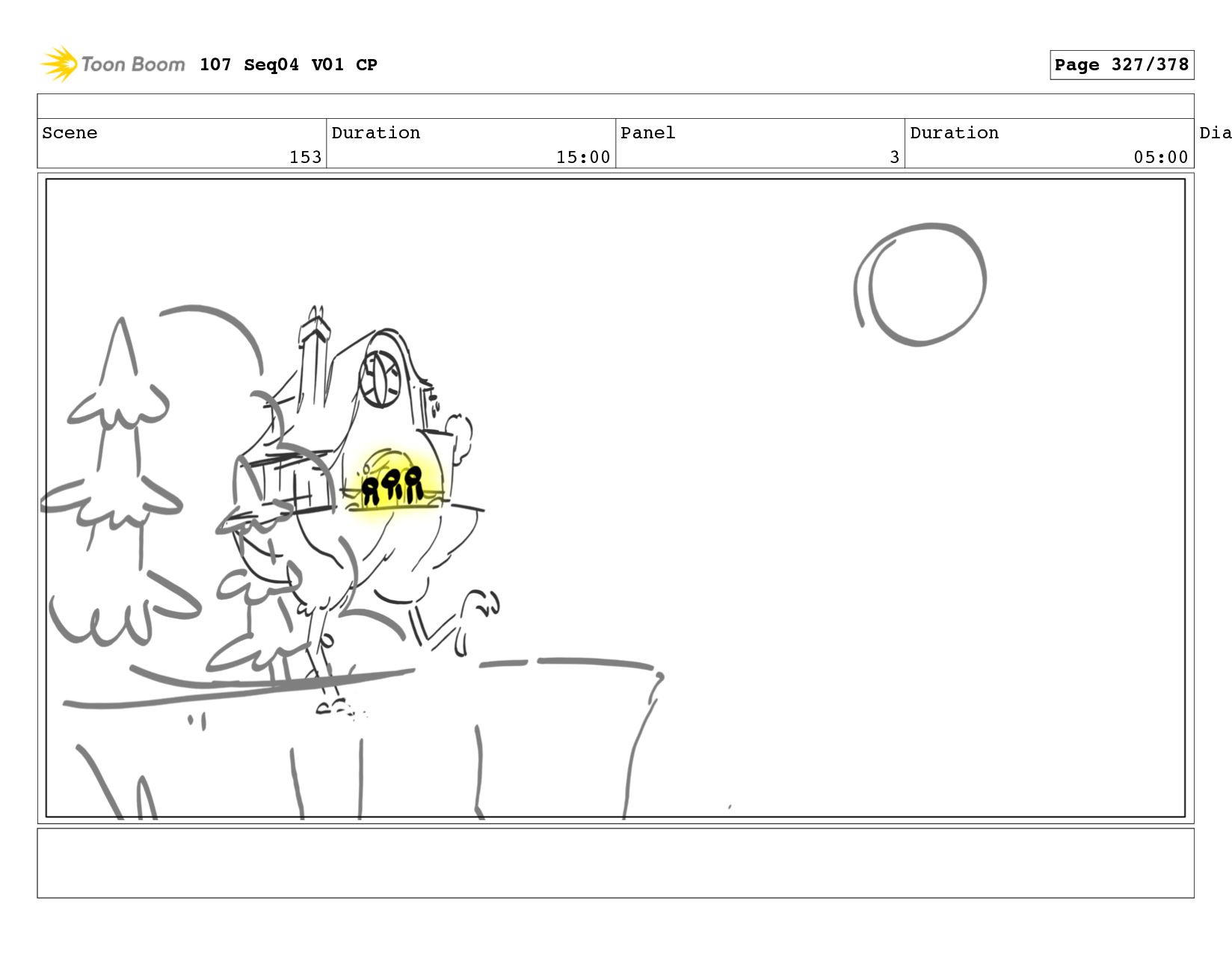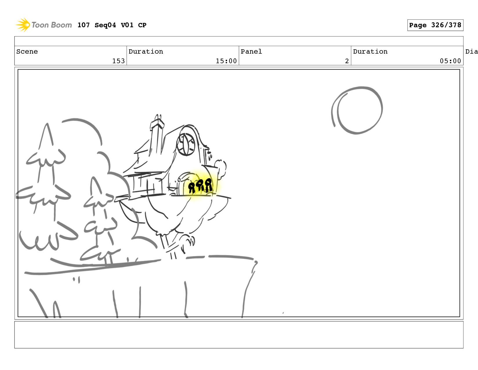 Scene 153 Duration 15:00 Panel 3 Duration 05:00 Dia 107