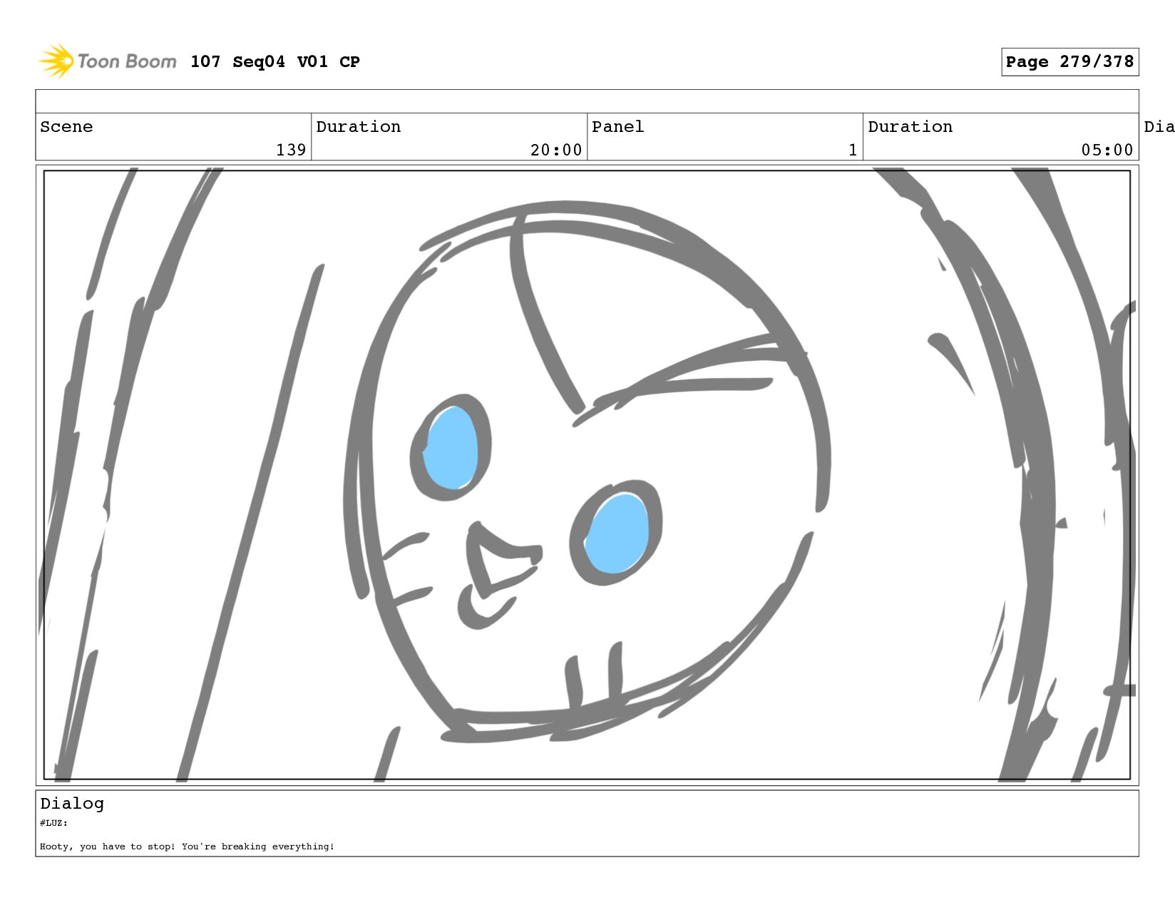 Scene 157 Duration 20:00 Panel 1 Duration 05:00 Dia 107