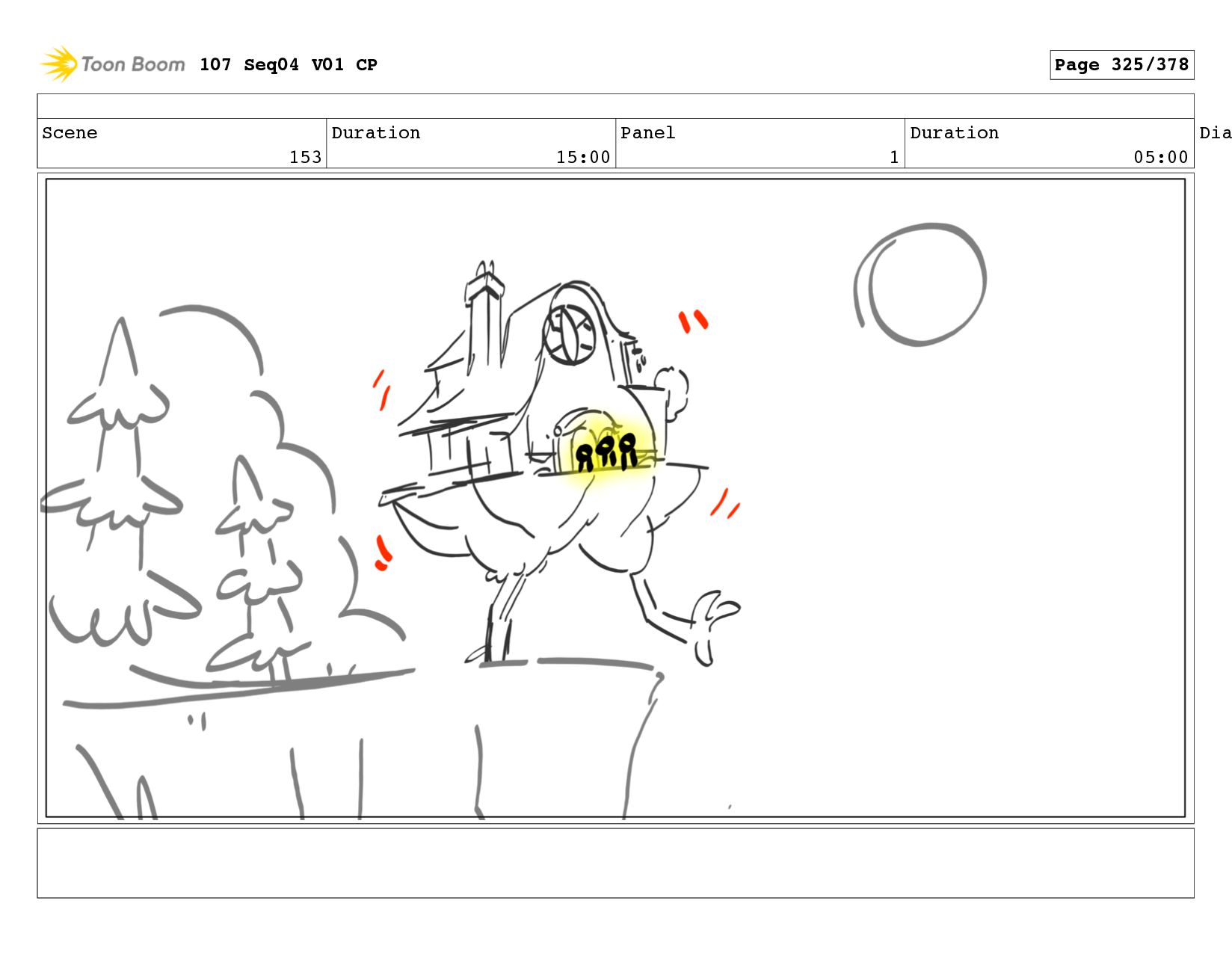 Scene 153 Duration 15:00 Panel 1 Duration 05:00 Dia 107
