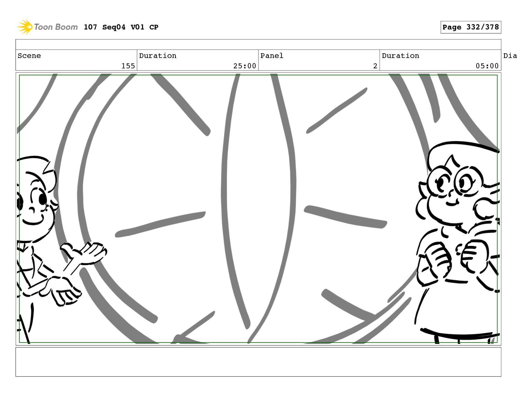 Scene 155 Duration 25:00 Panel 2 Duration 05:00 Dia 107