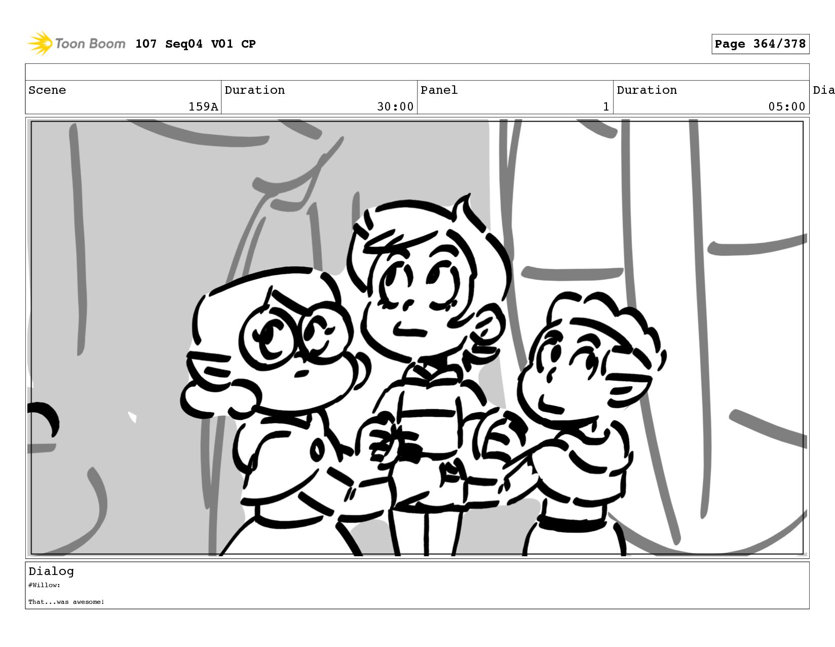 Scene 159A Duration 30:00 Panel 1 Duration 05:00 Dia Dialog