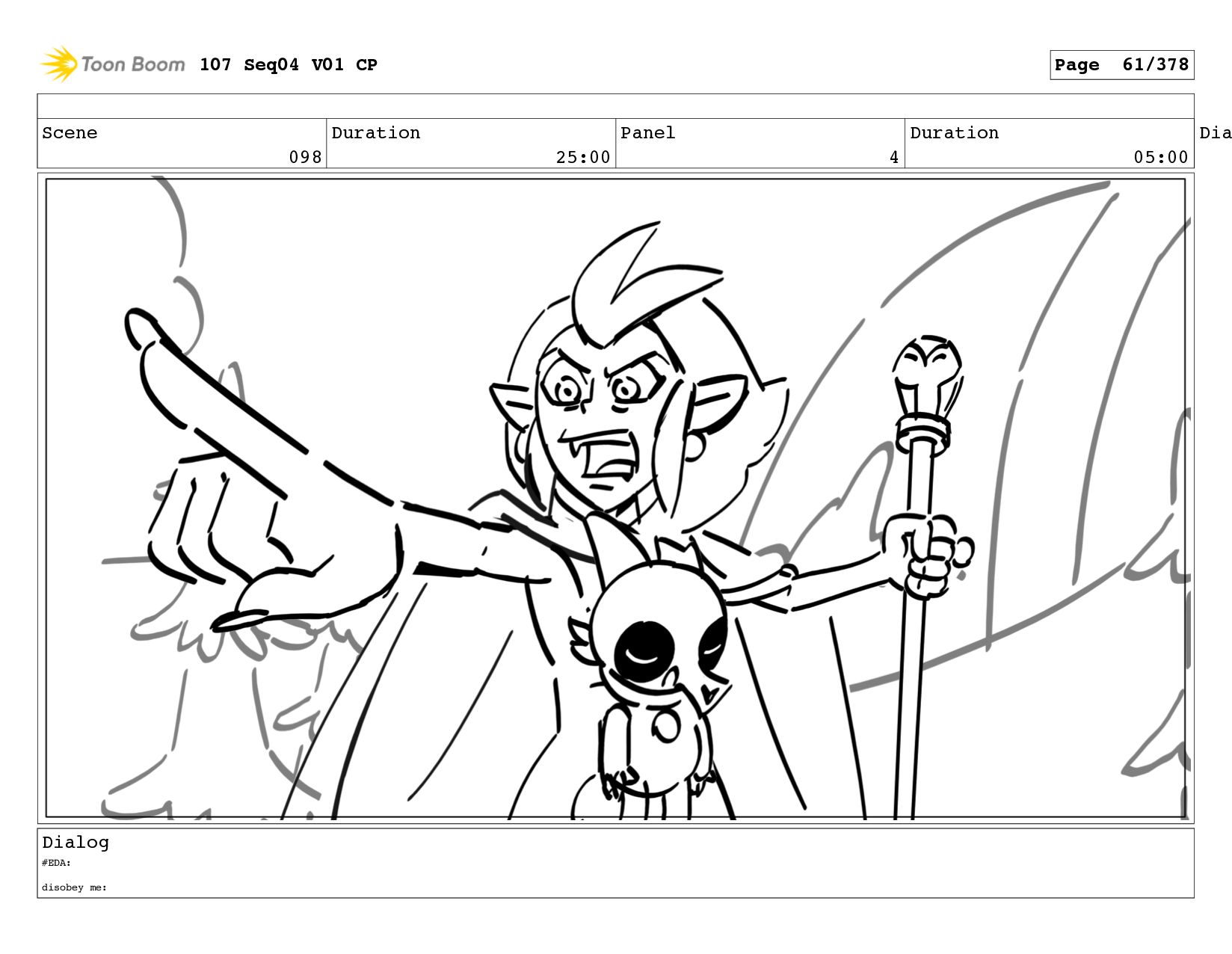 Scene 155 Duration 25:00 Panel 4 Duration 05:00 Dia 107
