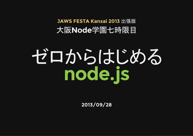 JAWS FESTA Kansai 2013 出張版 大阪 Node 学園七時限目 ゼロからはじめる node.js