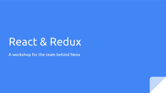 learn the principles about React. • Learn whats behind `redux` and the unidirectional data flow. • Get some understanding on why and how we’ve chosen the stack for the UI rewrite. • Write an example ToDo Application.