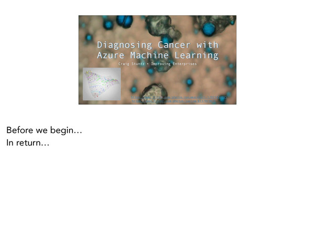 Azure Machine Learning provides an unusual mix of features designed to allow you to easily create "predictions as a service." There is integration with existing Azure data services, including HDInsight, a click and drag visual editor for creating machine learning experiments, and integration with the R language and libraries. The aim is to have a product which allows beginners to get started in machine learning while still delivering the features experts require. Does it deliver? We will build an experiment to predict cancer diagnoses based on observed characteristics of diagnostic imaging. We will also compare what we have built with other systems which attempt to solve the same class of problems.