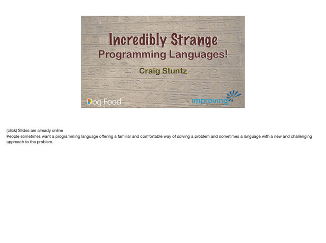 If you’ve ever suspected that “all programming languages are pretty much the same; they just have different syntax,” well, you will never suspect that again! Covering languages from the unusually powerful (Idris) to the illuminated (قلب) to the profoundly limited (BlooP), and all points in between, these languages will help you think differently about approaches to software problems you face in your day job. Of course we’ll have a lot of fun, but these languages are no joke. The practical benefit of an impractical language is the power to find new approaches to common problems.