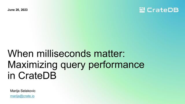 Achieving optimal execution plans in distributed databases is a challenging task. This talk will focus on CrateDB: a distributed SQL database, and key strategies for optimizing its query performance.