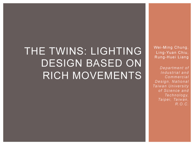 Form + Computing, Interactions, vol.17, no.1, pp 6-11. ¡ Gaver, B., Dunne, T. and Pacenti, E. (1999) Design: Cultural Probes, Interactions, vol.6, no.1, pp 21-29. ¡ Gibson, J.J. (1977) The theory of affordances. In R. Shaw & J. Bransford (eds.), Perceiving, Acting and Knowing. Hillsdale, NJ: Erlbaum. ¡ Hummels, C., Overbeeke, K.C. and Klooster, S. (2007) Move to Get Moved: A Search for Methods, Tools and Knowledge to Design for Expressive and Rich Movement- Based Interaction, Personal and Ubiquitous Computing, vol.11, no. 8, pp 677-690. ¡ Laban, R. and Lawrence, F.C. (1947) Effort. 4th Ed., MacDonald & Evans, London. ¡ Liang, R.-H. (2012) Designing for Unexpected Encounters with Digital Products: Case Studies of Serendipity as Felt Experience, International Journal of Design, vol. 6, no.1, pp 41-58. ¡ Light, A. (2006) Adding Method to Meaning: A Technique for Exploring Peoples' Experience with Technology. Behaviour & Information Technology, vol.25, no.2, pp 175-187. ¡ Loke, L.,Robertson, T. (2013) Moving and Making Strange: An Embodied Approach to Movement-Based Interaction Design, ACM Transactions on Computer-Human Interaction, vol.20 no.1. ¡ Jensen, M.V., Buur, J. and Djajadiningrat T. (2005) Designing the user actions in tangible interaction, In Proceedings of CC '05, ACM, pp 9-18. ¡ Ross, P. and Wensveen, S. (2010) Designing Behavior in Interaction: Using Aesthetic Experience as a Mechanism for Design, International Journal of Design, vol.4, no.2, pp 3-13. ¡ Zimmerman, J., Forlizzi, J. and Evenson, S. (2007) Research through design as a method for interaction design research in HCI, In Proceedings of CHI2007, ACM, pp 493-502.