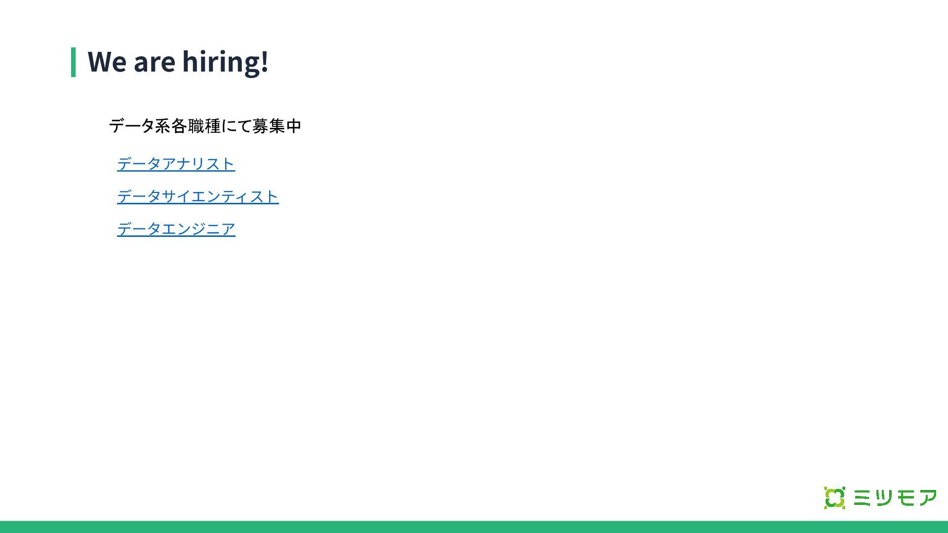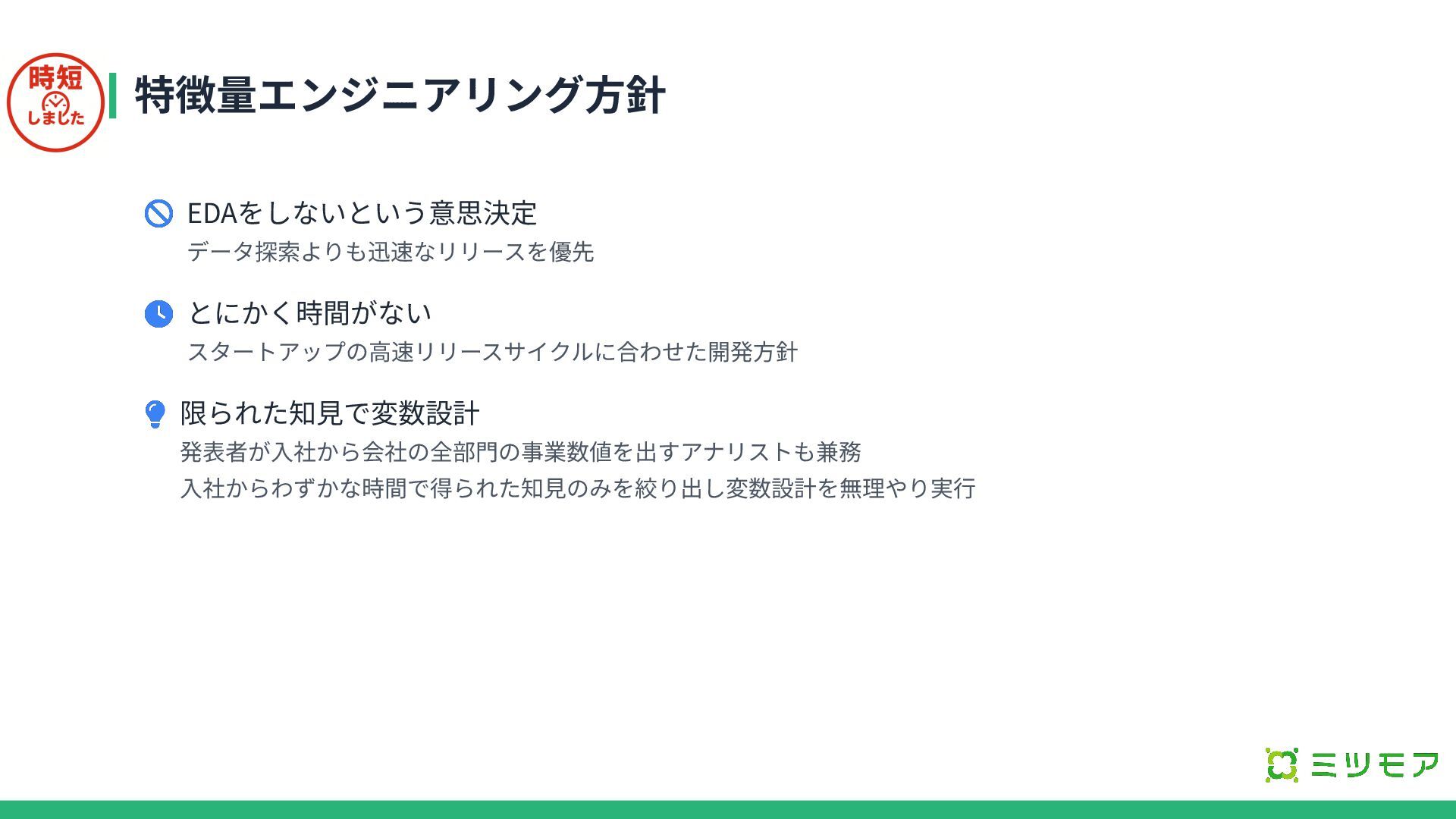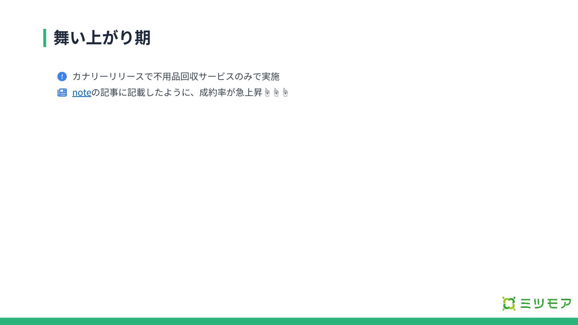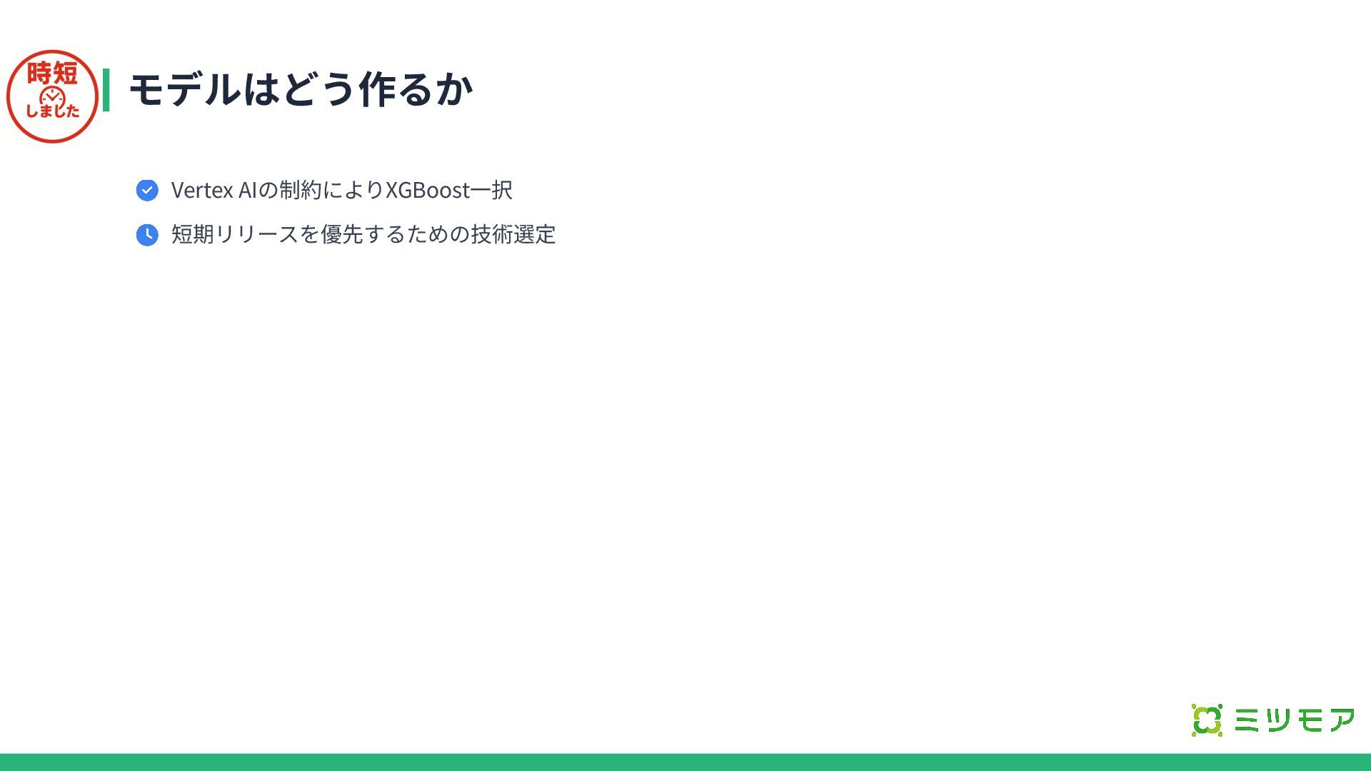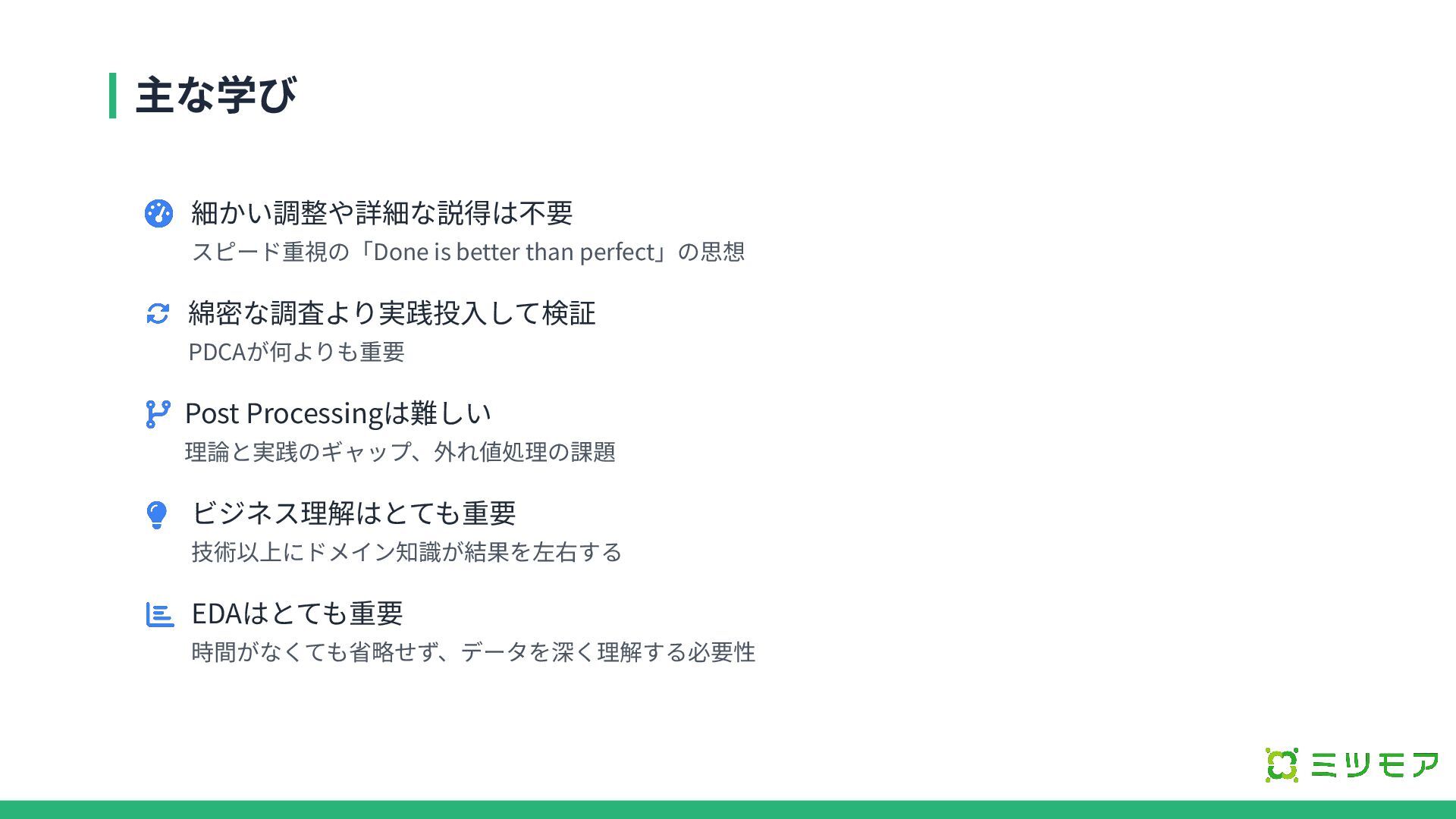 Model : 200弱) 事業者変数、依頼者変数 Code:Python Monitoring : Redash 機械学習置換率: 1st Model:10%台 (6th Model:50%超) ミッションを体現するコンセプトで設計 期待売上 = firstprice * predicted paid rate 現在取り⼊れている主要なビジネスロジック ‧外れ値対応 ‧リスクが⾼いマッチングの抑制 ‧サービス別特性 ‧⾮アクティブ事業者の抑制 Post Processing コンセプト 日本のGDPを増やし 明日がもっといい日になる と思える社会に Model