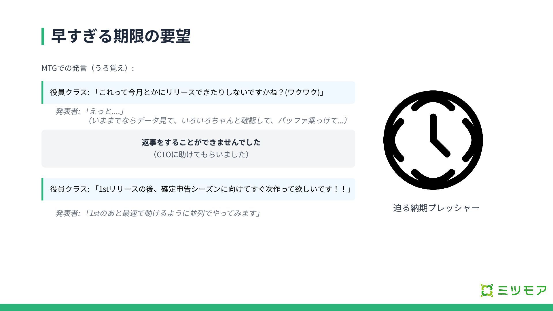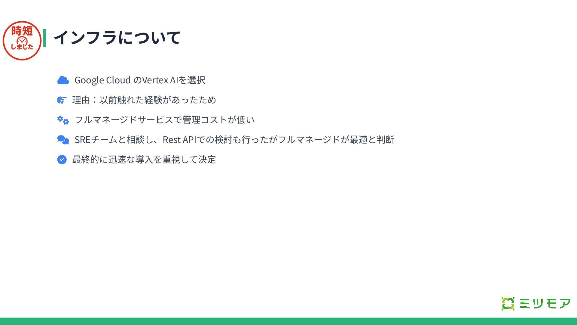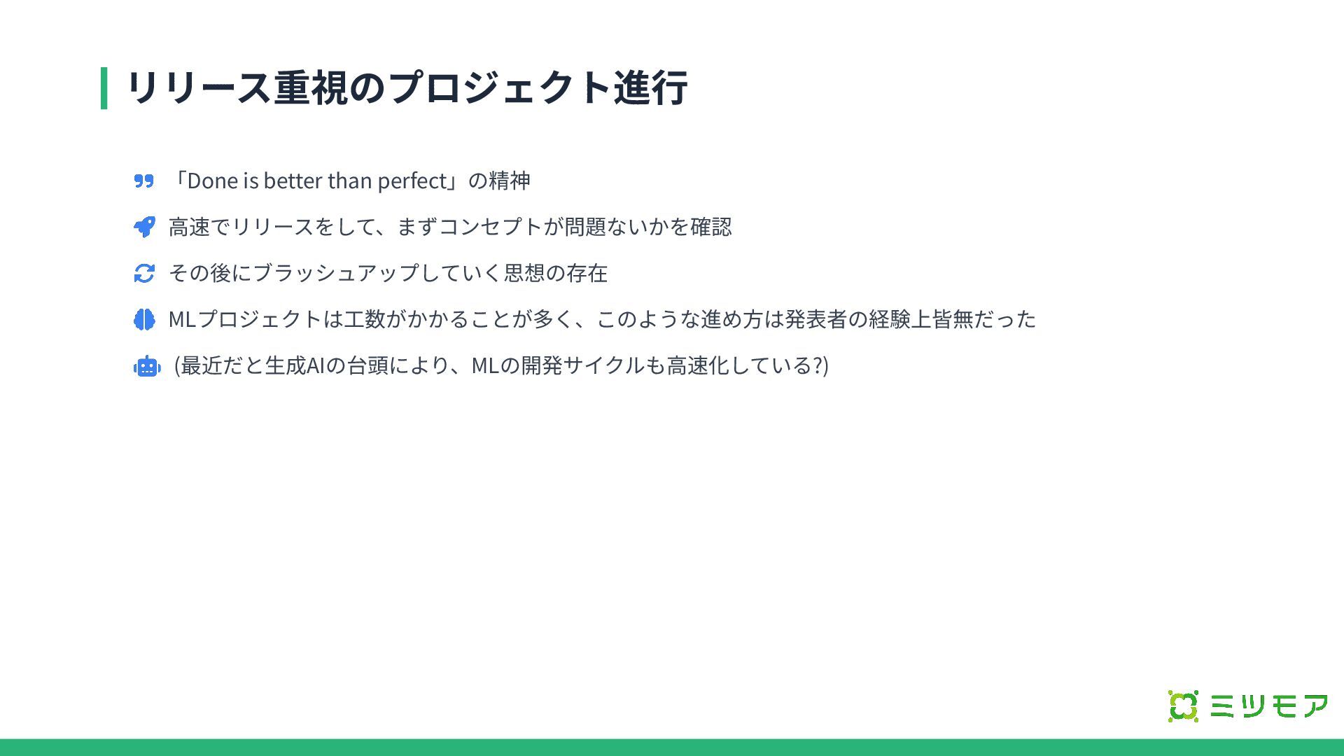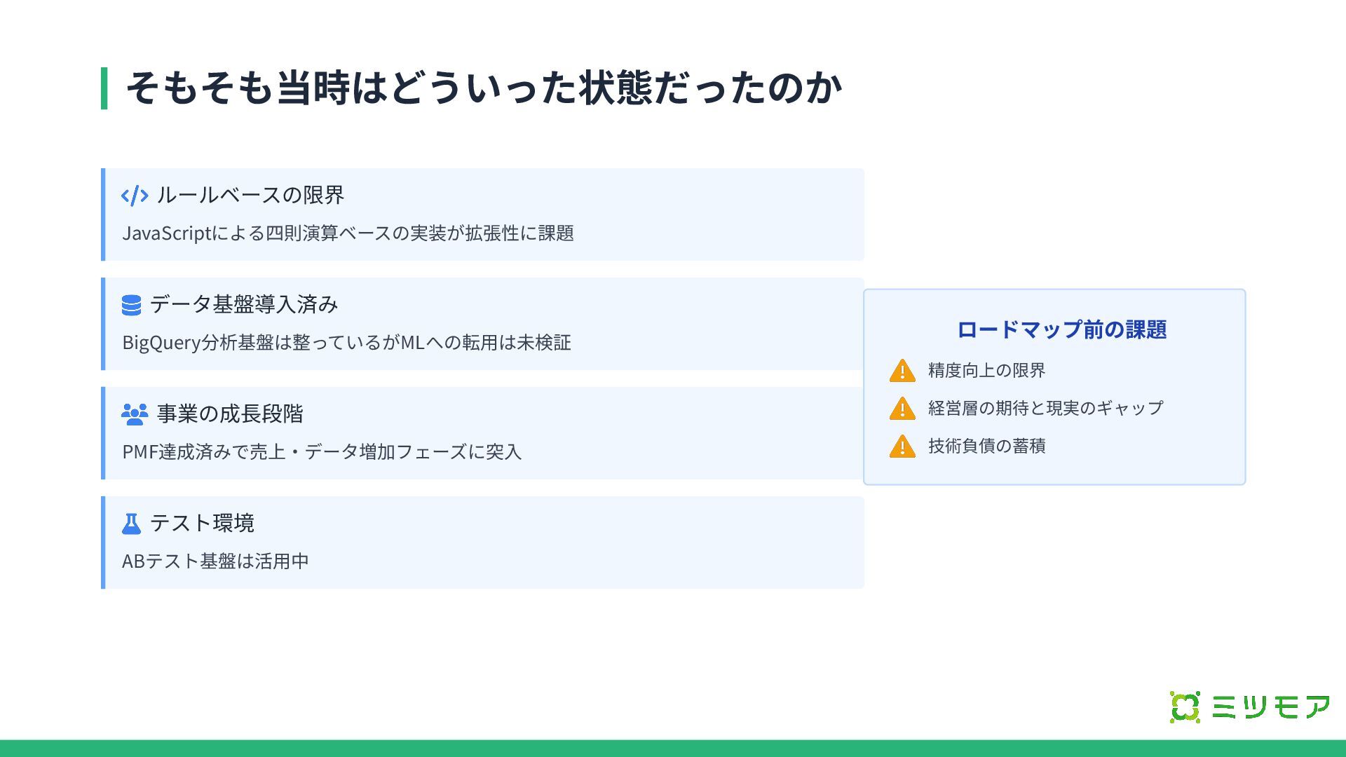 Model : 200弱) 事業者変数、依頼者変数 Code:Python Monitoring : Redash 機械学習置換率: 1st Model:10%台 (6th Model:50%超) ミッションを体現するコンセプトで設計 期待売上 = firstprice * predicted paid rate 現在取り⼊れている主要なビジネスロジック ‧外れ値対応 ‧リスクが⾼いマッチングの抑制 ‧サービス別特性 ‧⾮アクティブ事業者の抑制 Post Processing コンセプト 日本のGDPを増やし 明日がもっといい日になる と思える社会に Model