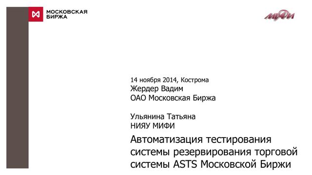 всевозможных тестовых сценариев; анализ правильности реакции компонент на внешние события; анализ устойчивости подключения сервера доступа; вычисление времени переключения каждой компоненты в новое состояние; формирование отчета о переходах компонент. Результаты работы внедрены в практику тестирования на Московской бирже.