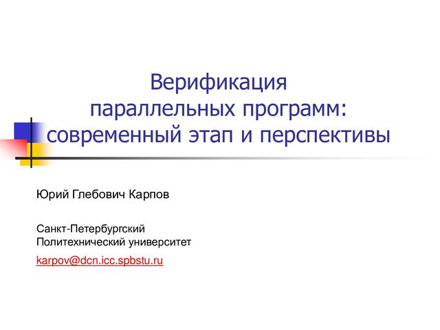А. Пнуэли (1977) На всей цепочке выполняются формулы p, q, qU(rq), - они истинны в w0 Семантика “возможных миров” Лейбница, в каждом свое понимание истинности: В каждом мире произвольная логическая формула истинна, либо нет: Это же справедливо и для произвольной темпоральной формулы: w0 р=true q=true r=false w1 р=false q=true r=true w2 р=false; q=false; r= true ... wn р=false; q=false; r= true ... ... ... w0 w1 w2 p, q, ~r, ~(q r), ~(r&~q) wn ~p, q, r, q->r, ~(r&~q) ~p, ~q, r, q->r, r&~q ~p, ~q, r, q->r, r&~q ... ... w0 w1 w2 p, q ~(q->r), ~(r&~q), qU(r q), FGr wn ~p, q, r, q->r, ~(r&~q), qU(r q), FGr ~p, ~q, r, q->r, r&~q, ~qU(rq), FGr ~p, ~q, r, q->r, r&~q, ~qU(r q), FGr Модель времени – последовательность целых (вчера, сегодня, завтра, …)