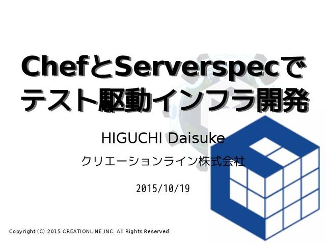 do its( :content ) { should match %r|^LANG="ja_JP.UTF-8"$| } end end ファイル /etc/sysconfig/i18n が文字列 LANG="ja_JP.UTF-8" を含むか確認 自動ならファイルを間違えない! 自動なら文字列を間違えない!