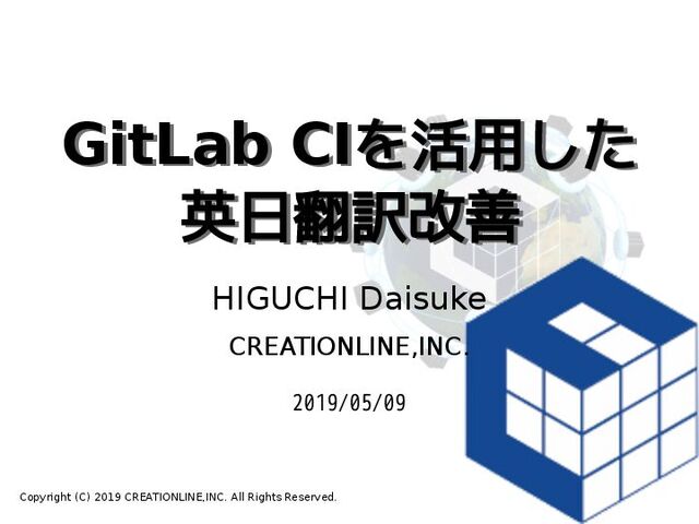 GitLab CIを活用した 英日翻訳改善 GitLab CIを活用した 英日翻訳改善 HIGUCHI Daisuke CREATIONLINE,INC. 2019/05/09