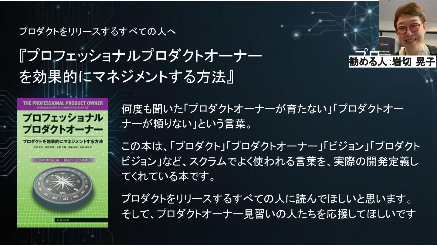 そして、プロダクトオーナー見習いの人たちを応援してほしいです 勧める人:岩切 晃子