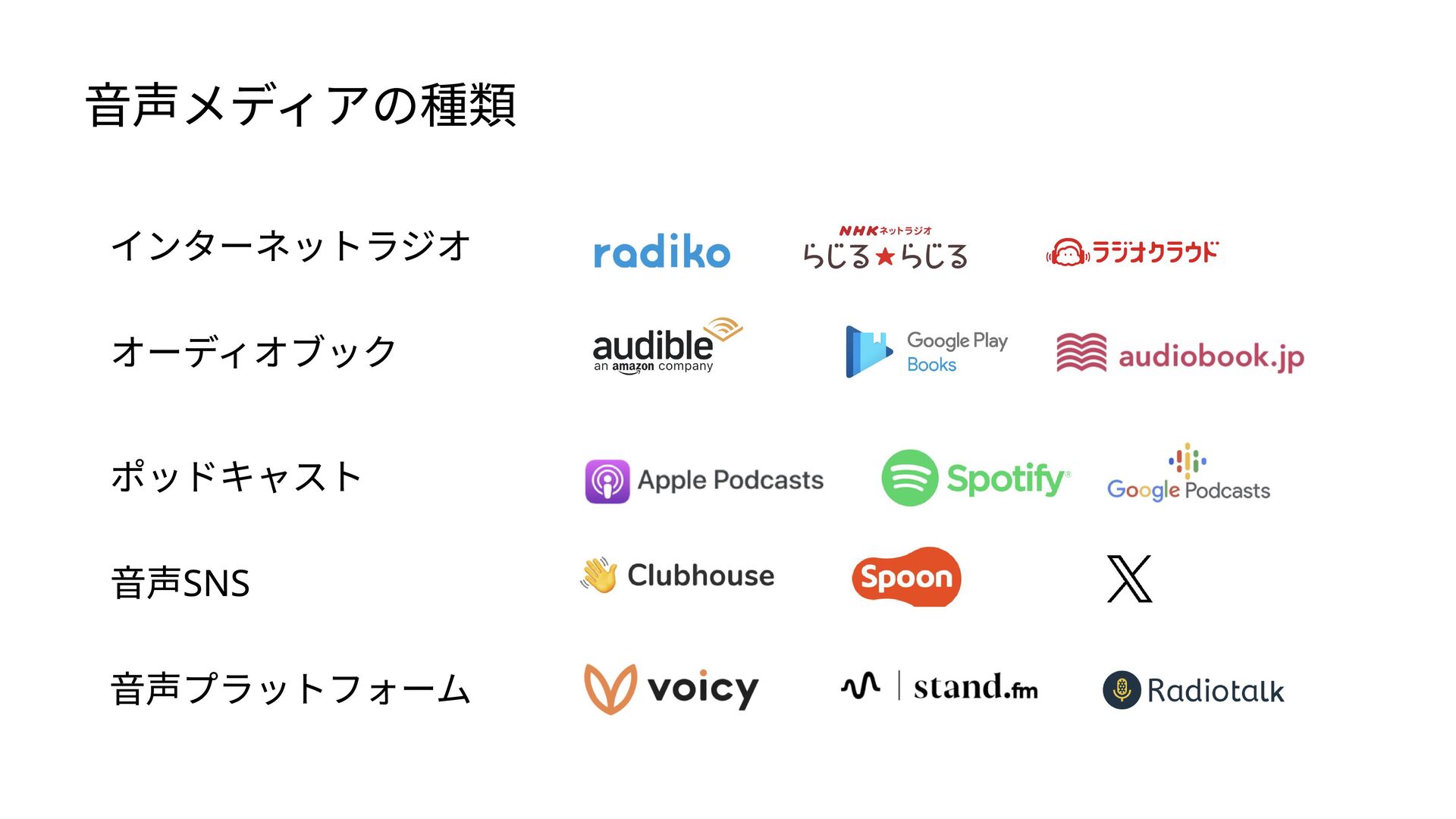 インターネットラジオ オーディオブック ポッドキャスト 音声SNS 音声プラットフォーム 音声メディアの種類