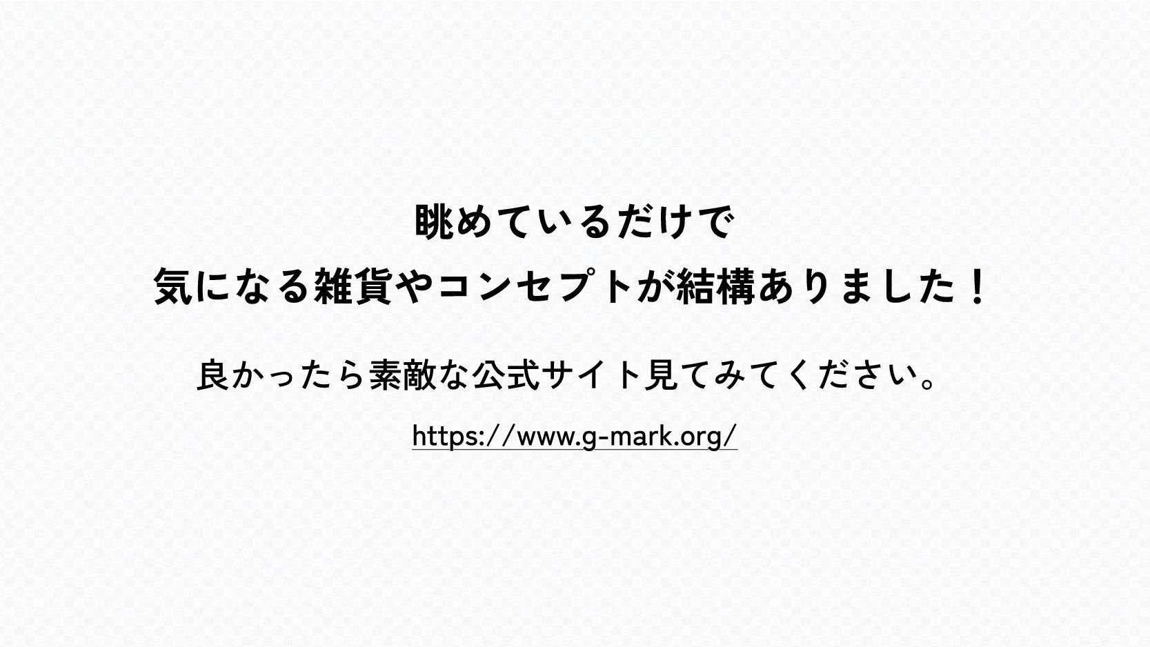 眺めているだけで 気になる雑貨やコンセプトが結構ありました! 良かったら素敵な公式サイト見てみてください。 https://www.g-mark.org/