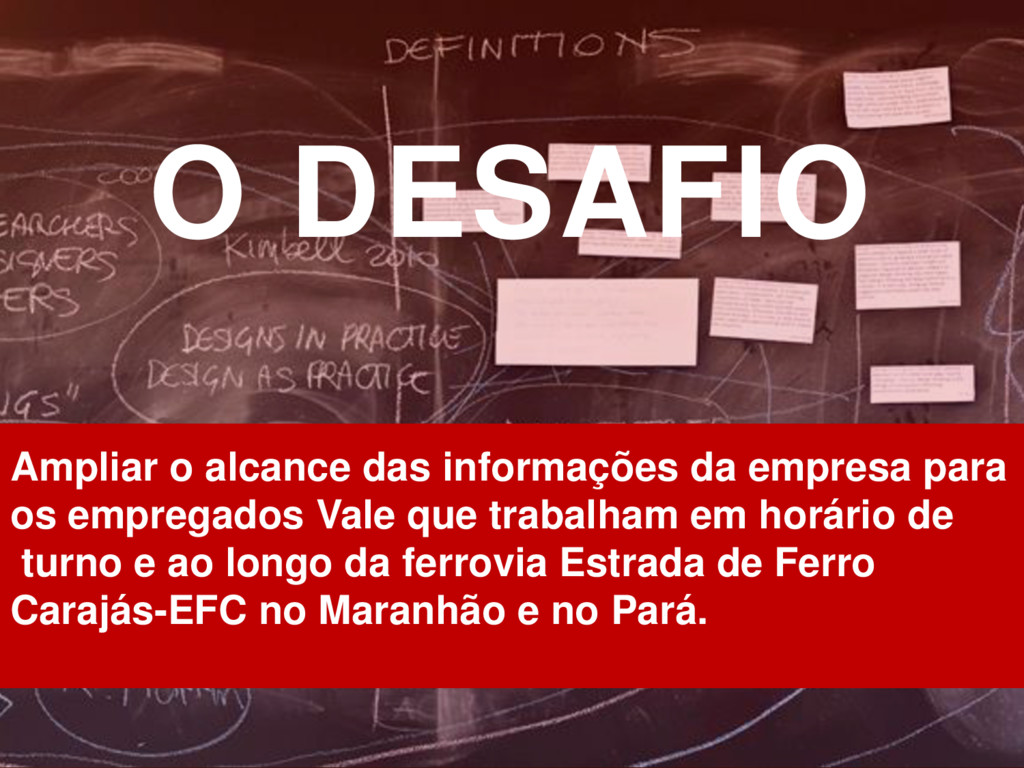 Ampliar o alcance das informações da empresa para os empregados Vale que trabalham em horário de turno e ao longo da ferrovia Estrada de Ferro Carajás-EFC no Maranhão e no Pará - Por Giselle Colins