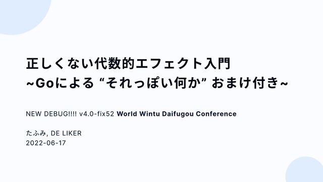 NEW DEBUG!!!! v4.0-fix52 WWDC (World Wintu Daifugou Conference) にて発表した「正しくない代数的エフェクト入門 ~Goによる “それっぽい何か” おまけ付き~」のスライドです