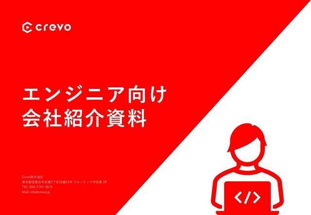 資本⾦ 100,000千円 設⽴ 年⽉⽇ 2012年6⽉5⽇ 主な株主 インキュベイトファンド、 サイバーエージェント・キャピタル、 伊藤忠テクノロジーベンチャーズ、 三井住友海上キャピタル、 VOYAGE VENTURES 2012年6⽉ PurpleCow株式会社(現Crevo株式会社)設⽴ 2012年7⽉ デザイン制作サービス「designclue」をリリース 2014年3⽉ 動画制作サービス「Crevo」をリリース 2015年2⽉ 総額1億円の資⾦調達を実施 会社名を「Crevo株式会社」に変更 2015年4⽉ 「designclue」をランサーズ社に事業譲渡 2017年9⽉ 総額3.1億円の資⾦調達を実施 2018年4⽉ Collet(VideoWorksの前⾝サービス)をリリース 2019年9⽉ 累計流通総額10億円を達成 2020年5⽉ 総額2億円の資⾦調達 2020年11⽉ VideoWorksリリース 2021年8⽉ クリエイター数10,000名に到達 2021年9⽉ 総額5億円の資⾦調達 会社概要 沿⾰