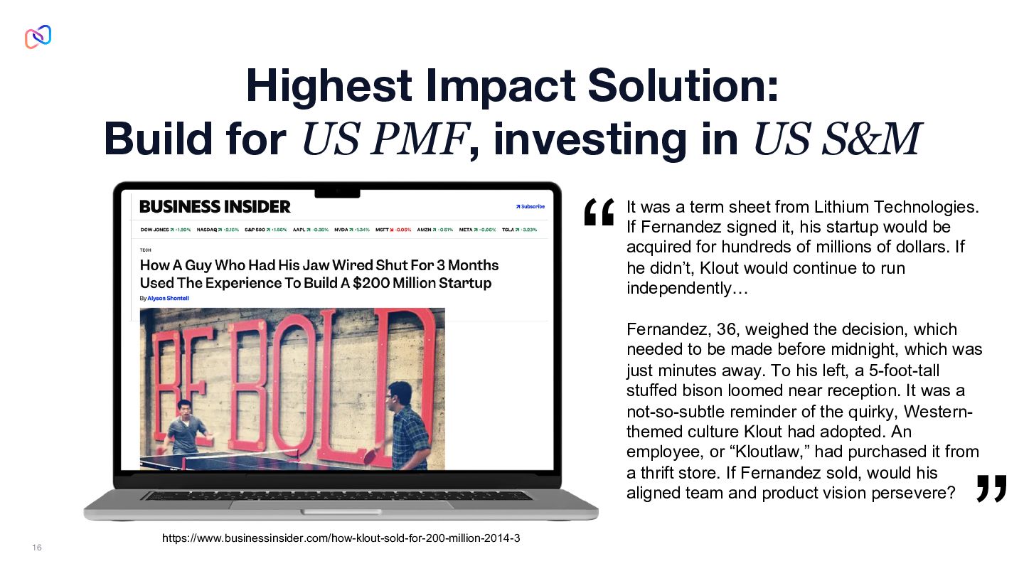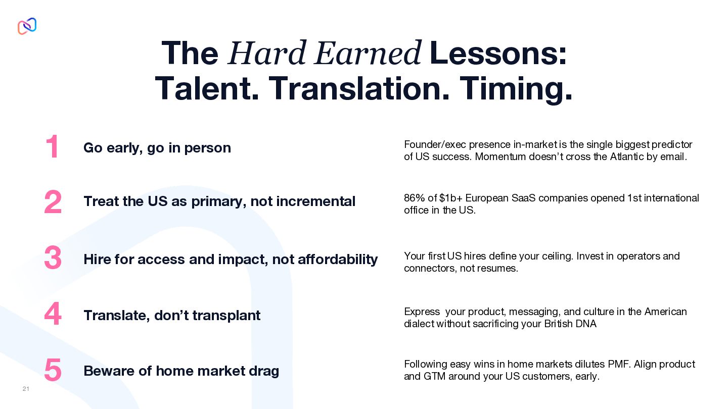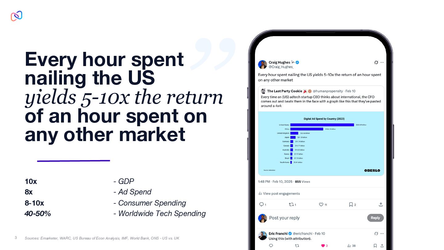 "Every hour spent nailing the US yields 5-10x the return of an hour spent on any other market.”