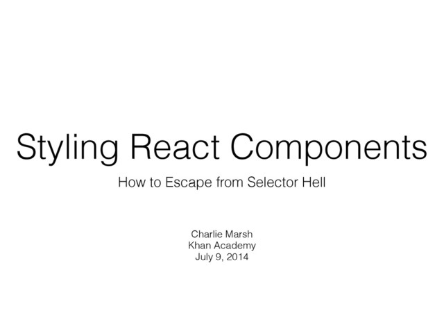 React components are meant to be modular, composable, maintainable, and so much more. But when you style your components with CSS selectors and other wizardry, you throw away so many of these nice properties. This talk focuses on why CSS selectors are a problem and what you can do about it when working with React.
