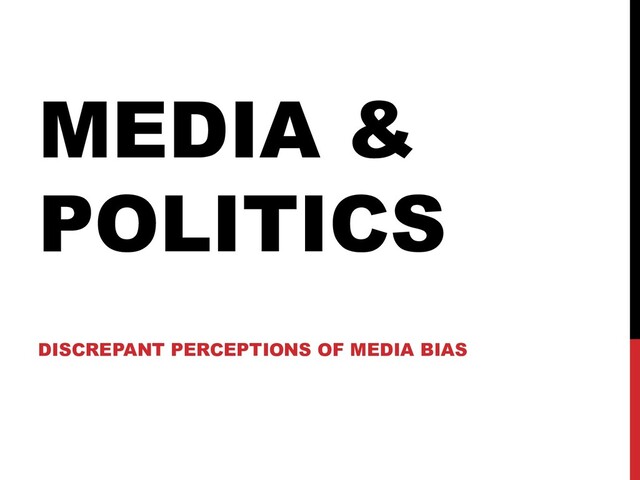 partisanship-based discrepancies in perceptions of media bias, skepticism, and attitudes toward media 2. To determine the extent to which discrepant perceptions of media bias can be predicted and explained (MLR) by: political rigidity, skepticism, attitudes toward media, political affiliation, education level, and SES 3. To assess whether or not there is a significant difference between Democrats and Republicans in observed discrepant perceptions of media bias