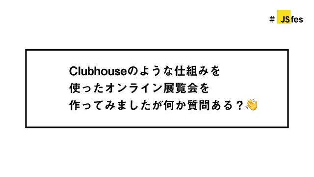 2021/07/17に開催された「夏のJavascript祭り Online」において、Clubhouseのような仕組みを使ったオンライン展覧会作った時の技術的な話あれこれと詰まりポイントなどを話しました。