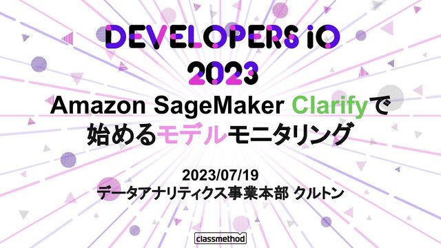 2023/07/19 データアナリティクス事業本部 クルトン Amazon SageMaker Clarifyで 始めるモデルモニタリング