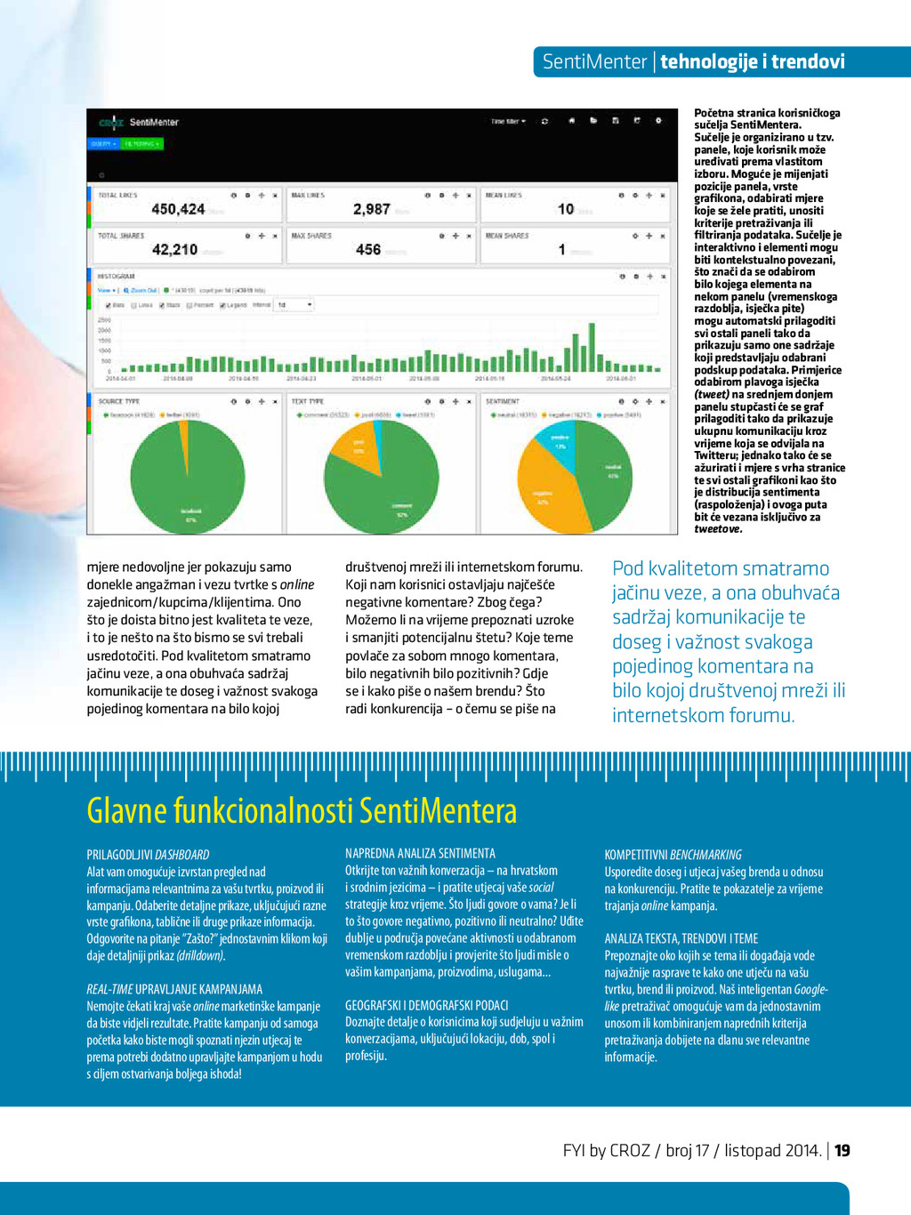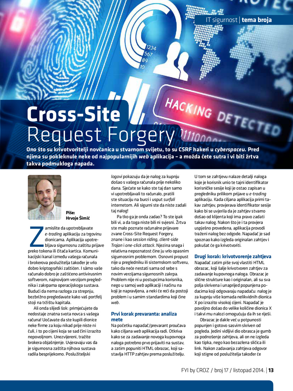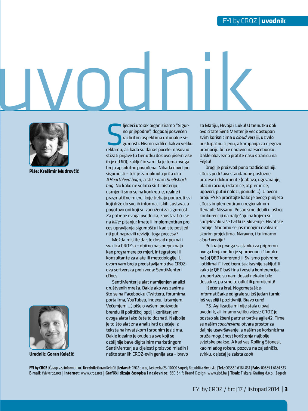2014. intervju | Darko Parić će svi, ili barem većina, profitirati od ove inicijative na ovaj ili onaj način. Za javnu upravu oblak je najčešće sinonim za uštede? Jesu li one jedini razlog za korištenje računalstva u oblaku? Uštede su svakako uvijek jako bitne, pogotovo u situaciji u kojoj se nalazimo, ali mislim da u spomenutom području ušteda nije najvažnija stvar koju dobivamo. Puno je važnije to da javna uprava ovime postaje brza, učinkovita i dostupna na internetu, čime građanima štedi i novac i vrijeme. Mislim da su pozitivni učinci ovih rješenja neposredno i posredno puno veći od konkretne uštede koja se dobiva na IT-u implementacijom clouda, iako i to nije zanemarivo. Ponavljam: krajnji je cilj brza i učinkovita javna uprava, a upravo je cloud najbolji put ka tome cilju. Može li informatika riješiti problem pre- velike i neučinkovite javne uprave? Problem prevelike javne uprave infor- matika ne može riješiti jer to spada u neka druga područja, ali može pojednostaviti procese i time stvoriti viškove ljudi koji rade na nekim poslovima, no i to spada u područje upravljanja ljudskim resursima, a ne pod informatiku. Ali neučinkovitost javne uprave svakako se može riješiti informatizacijom, odnosno uvjeren sam da su danas informatika i informatizacija poslovnih procesa javne uprave jedini ključ za postizanje bolje učinkovitosti iste. Ušli ste u drugu polovicu svojega man- data, što vam je dosada osobno najveći uspjeh? Kada smo prije gotovo tri godine počeli raditi, sustav je stvarno bio u potpunom neredu: svatko je radio što je htio i što je mislio da je najbolje. Rezultat je bio potpuno neusklađen sustav, koji nije u mogućnosti podržati niti temeljne oblike interoperabilnosti kako bi umrežena javna uprava počela funkcionirati. Definitiv- no smo shvatili da je neophodno početi koordinirati i voditi razvoj cjelokupnoga sustava na visokoj i strateškoj razini. To smo si zadali kao prvi cilj, a drugi je bio na neki način omogućiti građanima uvid u ko- rištenje sustava, odnosno približiti im javnu upravu. Na tom smo putu krenuli u dva osnovna smjera: država bez papira i sustav e-Građani. Kako bismo konačno uspostavili javnu upravu bez papira, u kojoj građani ne nose papire od jednoga državnoga tijela do drugog, po prvi smo put smo donijeli zakon koji definira cijelo područje državne informacijske infrastrukture i temeljnih načela kako se ona koristi. Također smo paralelno izgradili osnovne dijelove iste i već je sada spremna za korištenje: država bez papira u javnoj upravi danas nije bajka, nego realnost koju javna uprava treba poče- ti provoditi jer po prvi put imamo i tehničke pretpostavke za istu, a i sve se temelji na posebnom zakonu. se tek tako završi. To je platforma koja ima svoje dijelove, koje danas gradimo jedan po jedan, a koja podržava neograničen broj usluga. I upravo je najbolje to što se sustav razvija i što u njega ubacujemo i planira- mo dodati nove funkcionalnosti, a broj se usluga, koje se nalaze u njemu, neovisno o rečenim funkcionalnostima, povećava. Što se tiče konkretnih brojčanih podataka i podataka o novim uslugama i funkcio- nalnostima, kao što znate, i sam sustav e-Građani dostupan je svim građanima od lipnja ove godine. U međuvremenu imamo gotovo 80 000 registriranih građana, čime smo iznimno zadovoljni. Također postoji velik interes i za e-usluge, kojima se pri- stupilo više od 620 000 puta te je poslano više tisuća e-poruka u osobne korisničke pretince građana. Imamo mnogo planova oko daljnjega razvoja sustava: • planiramo uključiti nove e-usluge poput: e-savjetovanja, e-recepta, zdravstveno- ga kartona, pristupa podacima iz susta- va socijalne skrbi, pristupa podacima iz sustava JOPPD-a, pribavljanje uvjerenja o prebivalištu, pribavljanje uvjerenja o redovitom školovanju ili studiranju, nove usluge iz mirovinskoga sustava, sustava zdravstva, pomorstva... • također planiramo u potpunosti integri- rati i sve e-usluge, koje su popisane na portalu e-Građani, a koje pružaju ostala tijela javne uprave i jedinice lokalne samouprave (približno 90 e-usluga), • planiramo omogućiti prijavu građana u sustav korištenjem vjerodajnica iz sustava bankarstva, • planiramo uspostaviti sustav plaćanja upravnih pristojbi elektroničkim putem, • planiramo se povezati s EU sustavom za prekogranično priznavanje elektroničkih identiteta i pružanje e-usluga. Sve je to samo dio planova za iduću godinu, a, kao što rekoh, sam će sustav daljnjim razvojem i ulaganjem moći i puno više od toga. To je na kraju krajeva i ono što su građani najbolje percipirali i ocijenili kao korisno i kao pravi iskorak javne uprave prema građanima. Moram napomenuti da je sustav e-Građani samo vrh ledenoga brijega s inženjerskoga aspekta jer je bilo potrebno napraviti jako puno pripremnih stvari kako bi jedan ovakav sustav ugledao svjetlo dana i radio kako treba. Javna uprava postaje brza, učinkovita i dostupna na internetu, čime građanima štedi i novac i vrijeme. Konačno smo uveli sustav e-Građani koji je po prvi put jedinstveno mjesto u virtualnom svijetu koje povezuje građane s javnom upravom. Svim je građanima pri- stup besplatan, a broj usluga stalno raste. Također je započeo proces stvaranja dr- žavnoga oblaka javne uprave koji će u skoro vrijeme dati sve one pozitivne rezultate koje takva rješenja proizvode. A sve je to rezultat strateškoga vođenja i uistinu velike suradnje s većinom tijela državne uprave. S druge strane konačno smo uspjeli objediniti na jednom mjestu i pod jedno strateško upravljanje više od 8000 km dr- žavne optičke infrastrukture, koja će služiti kao temelj za razvoj broadbanda i iskoriš- tavanja EU fondova za razvoj broadbanda u ruralnim područjima. I na kraju mislim da mogu reći da je naš najveći uspjeh, pritom mislim na e-Hrvat- sku, što smo konačno uspostavili prave i čvrste temelje daljnjega razvoja elektro- ničke javne up