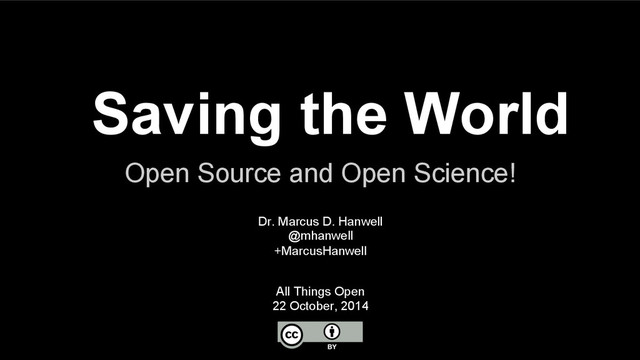 so little space • Opensource.com, Kitware • The Open Science movement, open source, … • Find me on the web [email protected] @mhanwell +MarcusHanwell cryos.net github.com/cryos