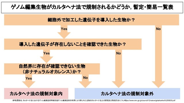 Aug. 30th 2018, in Japan, the Ministry of the Environment decided the regulation of genome edited plants in accordance with the Cartagena Protocol on Biosafety.