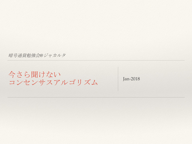 暗号通貨勉強会@ジャカルタ 今さら聞けない コンセンサスアルゴリズム Jan-2018