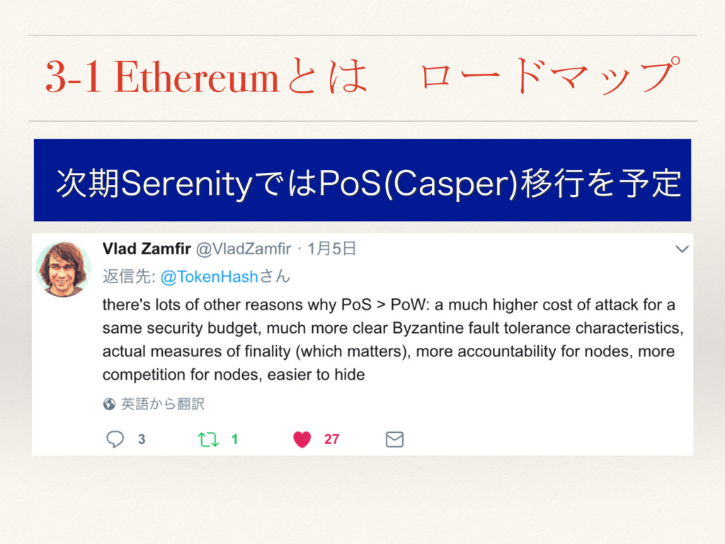 3-1 Ethereumとは ロードマップ ࣍ظ4FSFOJUZͰ1P4 $BTQFS ҠߦΛ༧ఆ